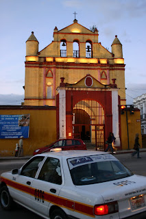 On continue notre tour de San Cristobal par l eglise San Domingo. Dans le couvent attenant des indiennes vendent des produits artisanaux. Le detecteur de prix de Celine fonctionne a merveille : l article qui lui plait est le plus cher propose! Tres joli tapis vendu a 1800 pesos soit environ 900 francs! On n achetera rien.