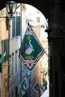 La ville de Sienne est divisee en 17 quartiers qui s affrontent 2 fois par an au cour d une course de chevaux. Chaque quartier a ses emblemes - voir la photo.