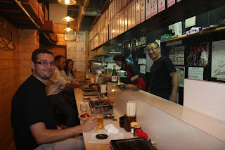 Nous sommes ensuite entrés dans un minuscule restaurant et de nouveau nous sommes tombés sur des gens très sympas, le client d'a côté parlant anglais nous a conseillé sur les plats à prendre, nous a fait gouter ce qu'il avait commandé et nous a même offert un verre du vin de riz. Notre esprit scientifique aiguisé nous a obligé à tester le breuvage et bien que cela soit blanc et laiteux d'aspect cela a bien un gout de vin.Pour un restaurant choisi au hasard, on est vraiment bien tombé! Pour finir une photo de nuit.