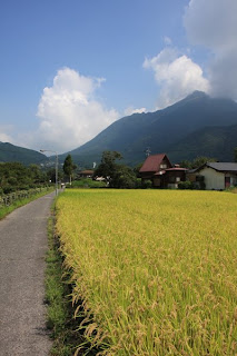 Première vrai rencontre avec la campagne japonaise, ses rizières, et les montagnes à l'horizon. Les paysages sont beaux et la balade jusqu'au lac Kinrinko est reposante: on ne croise quasiment personne, ça change de l'animation et de la foule des villes.