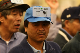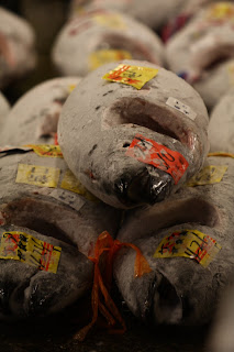 Nous nous sommes levés à 5h00 pour être à 5h30 au marché aux poissons de Tsukiji. Nous avons assisté à la vente à la criée des thons congélés.