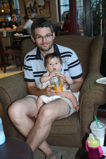 Vous pouvez aussi voir quelle est très attirée par les pigeons: c'est la première fois qu'elle se penche hors de sa poussette pour voir quelque chose qui l'intéresse: