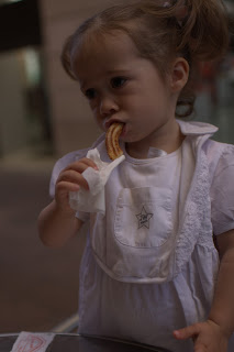 Anonyme (11 octobre 2011 à 17:17): La photo représente un toréador, demain si je ne me trompe pas vous irez visiter les arènes de Sévilla.Julie est adorable comme toujours et très appliqué en mangeant son churro.