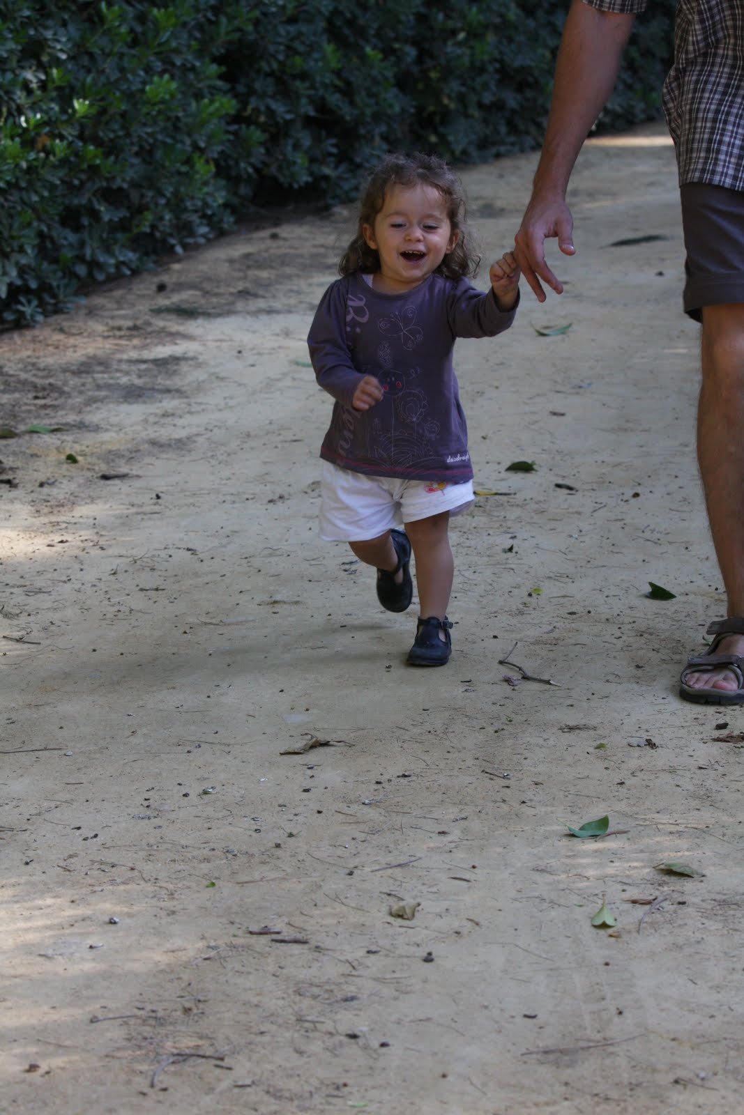 Dans l'Alcazar de Séville en train de courir et de tirer les oreilles de son papa