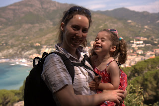 Ce matin nous avons fait une balade autour de Levanto. Nous prenons un parcours qui se réalise en 1h30, mais qui a beaucoup de dénivelé. Avec Julie nous faisons en une 1h le quart du parcours environ. Il faut dire qu'elle nous pose pleins de questions et que quand elle veut marcher forcément la moyenne horaire chute.
