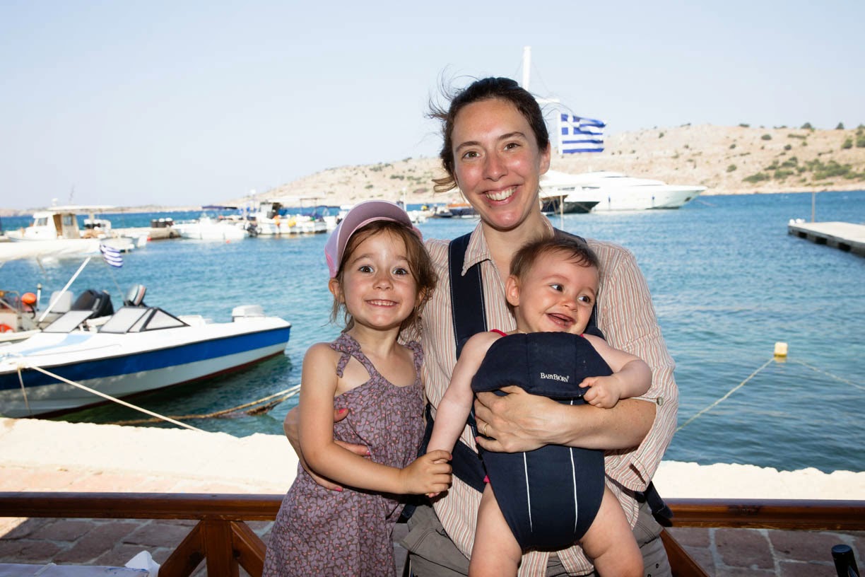 Les paysages sont quasiment lunaires tellement la végétation est peu développée. Les montagnes sont pelées et c'est la région la moins belle de Chios que nous ayons visitée. Cela semble assez connu car nous ne croisons quasi personne sur la route. Nous nous arrêtons pour manger dans l'anse de Marmaro. Notre table est à 5 mètres de la mer et nous sommes les seuls clients du restaurant.