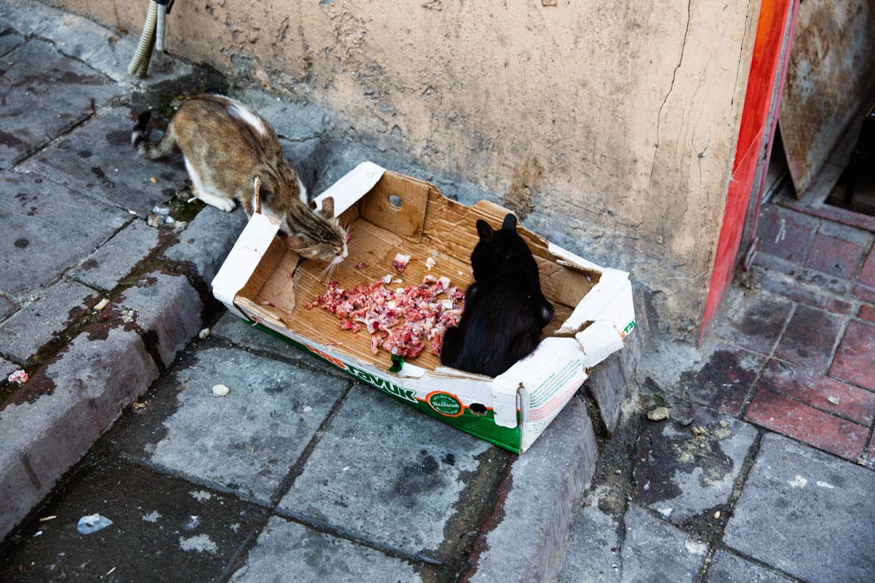 Fait marquant en Turquie, il y a des chats partout dans les rues. Ces chats n'appartiennent apparemment à personne mais beaucoup de gens laissent de la nourriture dans les rues pour eux. Les poubelles sont bien sûr éventrées. Alors que j'aime beaucoup les chats, ce soir j'en aurais bien étranglé un. En effet alors que je mangeais tranquillement dans la rue, un chat c'est faufilé sous la table et m'a fait pipi sur la jambe!!! Incroyable!