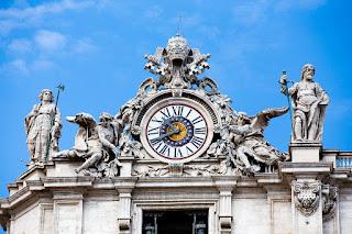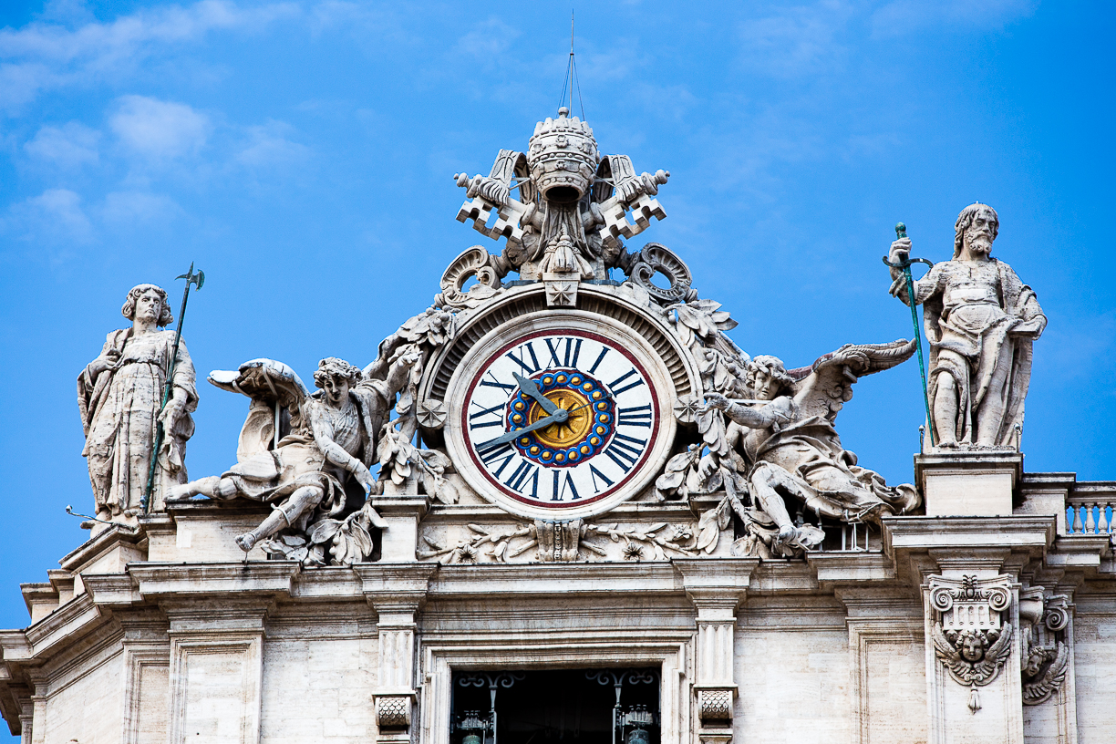 Ce matin on prend le métro direction le Vatican. Comme d'habitude il fait très beau (traduction : on a bien chaud). On arrive sur la place saint Pierre et son impressionnante basilique. Il y a une queue immense qui fait tout le tour de la place pour entrer dans la basilique. On décide donc de rester à l'extérieur et d'admirer le paysage.