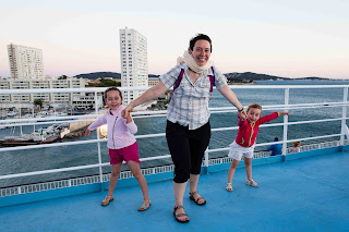 L’embarquement est un peu long, et les filles s’impatientent de découvrir notre cabine. Après 1h30 d’attente sur le parking, nous pouvons enfin accéder au bateau, garer la voiture et découvrir notre cabine.