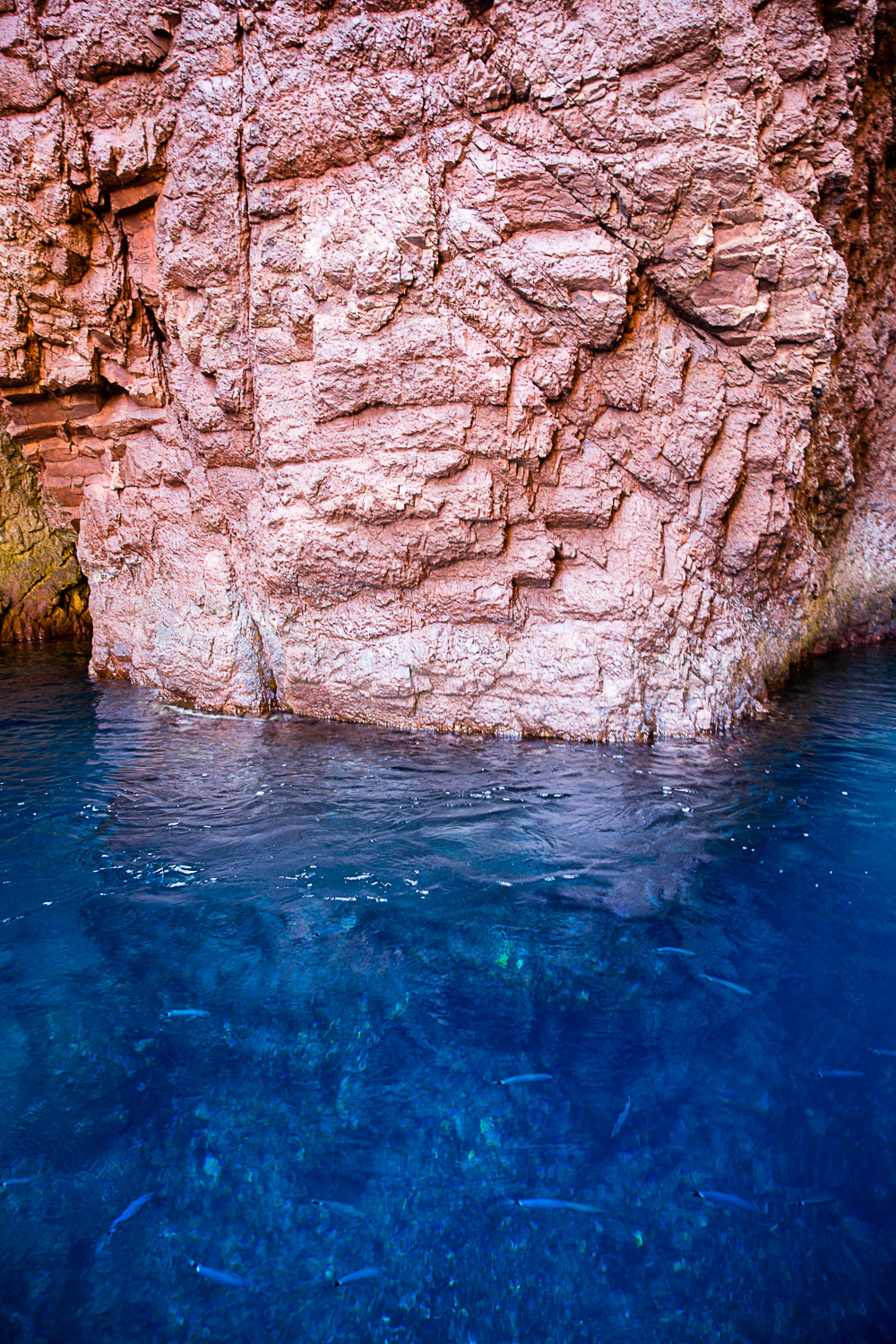 C’est une réserve naturelle qui n’est accessible que depuis la mer, et où malheureusement il est interdit de se baigner. Et c’est bien dommage car l’eau bleue foncée et turquoise par endroit est transparente et laisse voir fonds marins et poissons.