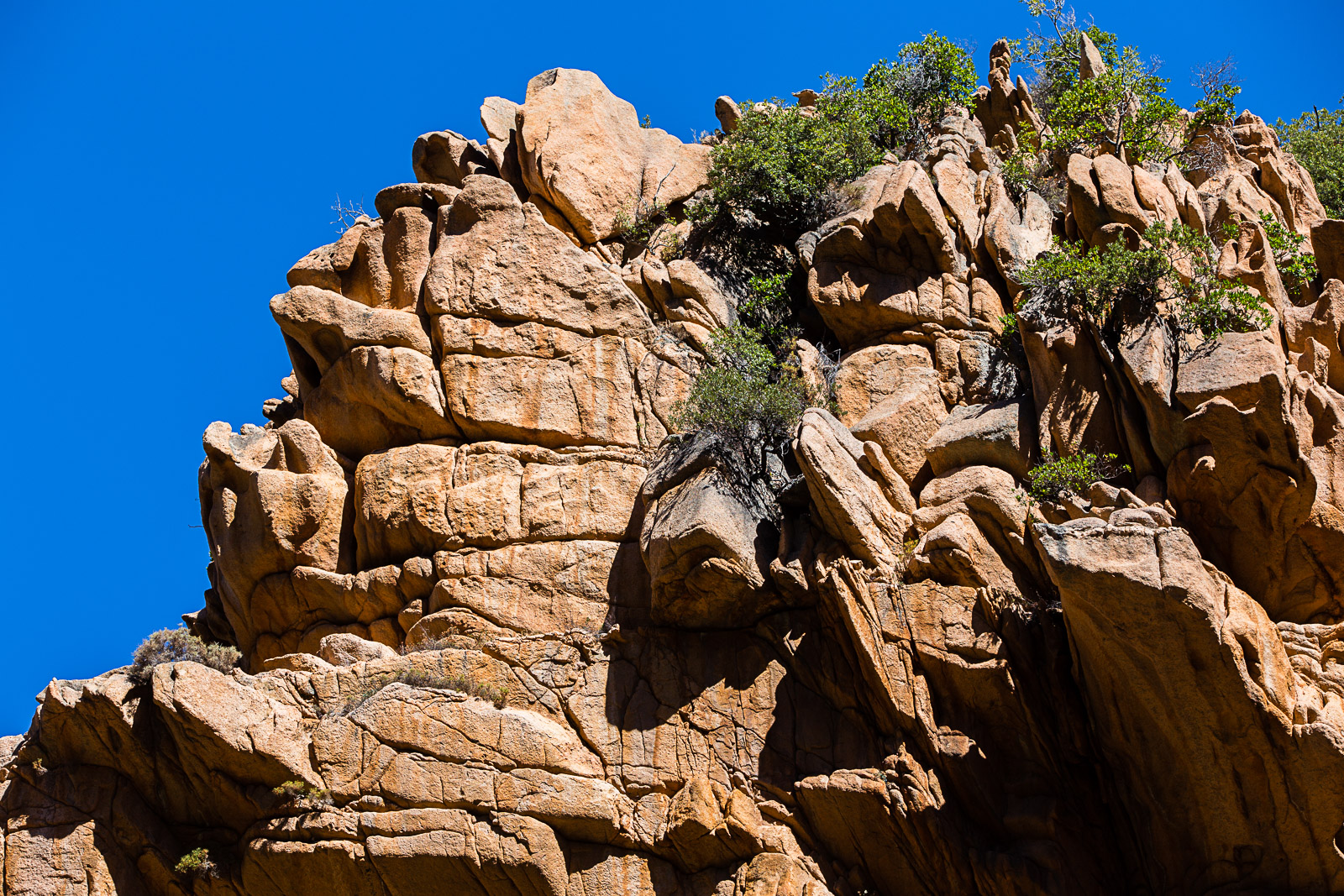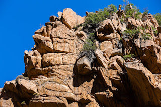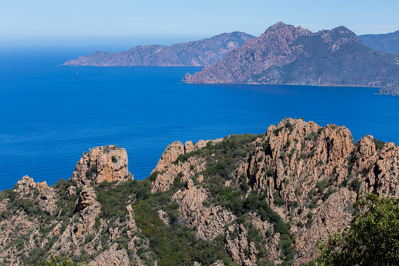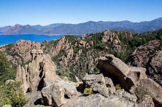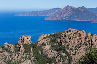 Nous visitons les calanches de Piana par le chemin côtier. La côte est très belle, les rochers sont de couleurs orange et rouge et magnifiquement ciselés.