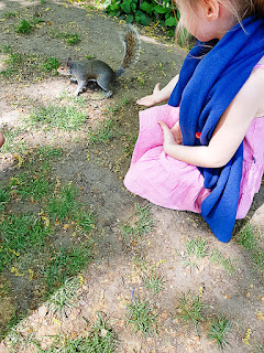 On continue ensuite vers le parc de Kensigton. Nous mangeons au bord de la rivière Serpentine de très bons burgers sous un soleil radieux. Les londoniens sont de sortie et profitent du beau temps pour faire des tours de barques et de pédalo. Dans le parc on trouve beaucoup de cygnes, de canards, de poules d'eau et d'oies et également de jolis écureuils pas farouches du tout qui viendront manger dans la main de Mathilde pour son plus grand bonheur.