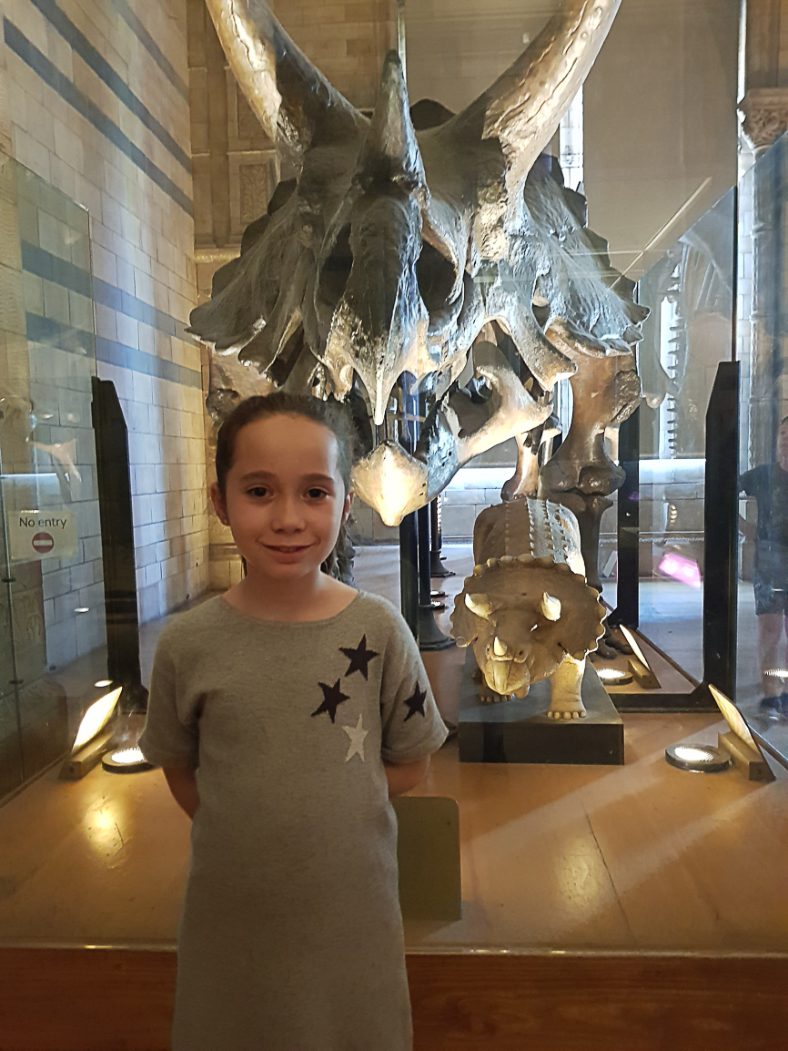 Après un solide petit déjeuner typiquement british : oeuf, bacon, pancakes (L'hôtel met à disposition une machine pour faire des pancakes dont nous usons et abusons, n'est pas Julie, 14 pancakes pour un petit déjeuner c'est pas mal), fruits nous partons au Natural History Museum à la rencontre des dinosaures et d'autres créatures extraordinaires. La bâtisse est magnifique et offre un magnifique écrin aux très nombreuses collections.