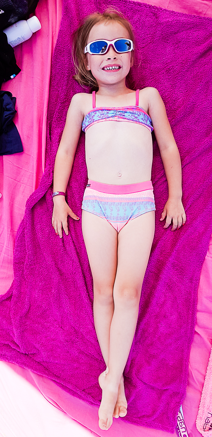 L'après-midi Mathilde retourne s'éclater dans les vagues pendant que je joue avec Julie aux dés. Elle fera sa sieste sur le sable bientôt rejoint par sa maman - Julie fait semblant pour la photo !
