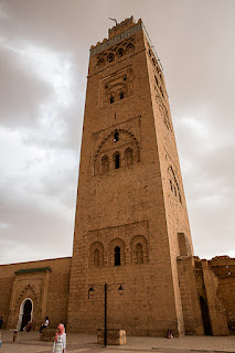 On va ensuite voir le minaret de la Koutubia. C'est haut, c'est massif mais c'est pas très fin. C'est caractéristique du style Saadien dont nous avons visité les tombeaux le matin.