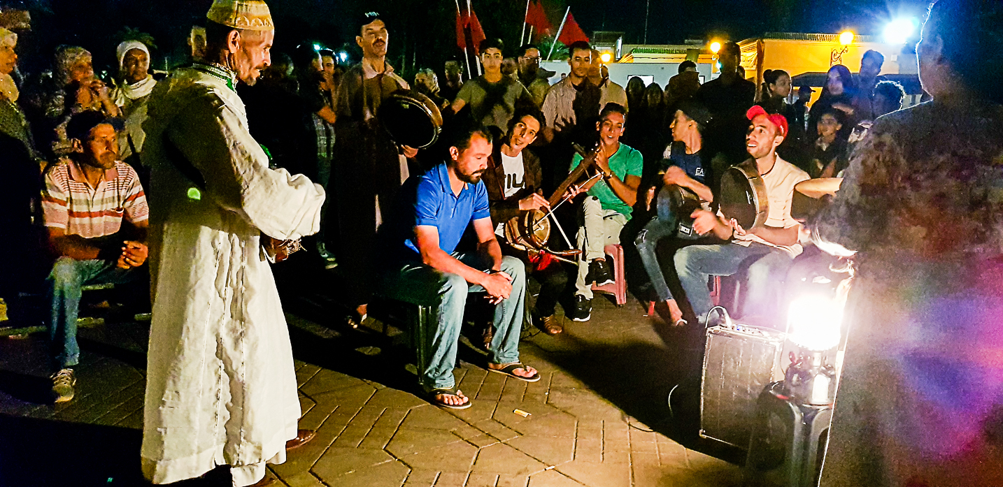 On écoute un spectacle de musique berbère et comme je donne une pièce la dame qui fait la quête nous pousse devant et nous fait nous assoir sur un banc.
