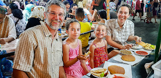 Nous avions mis le réveil ce matin à 8h15 mais notre réveil sur patte l'a devancé. On prend notre petit déjeuner au riad avec ici des fruits frais (prunes, bananes et figues) en plus du pain, des viennoiseries et des crêpes marocaines.