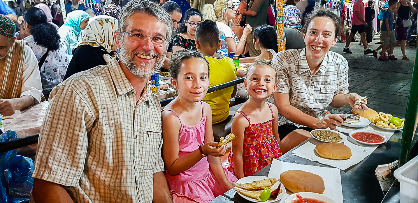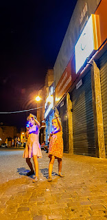 Comme tous les soirs nous partons sur la place Jemaa El Fna qui ce soir est particulièrement bondée. On a décidé de manger sur un des stands, le numéro 14 qui est recommandé sur internet. Mais c'est difficile de l'atteindre tous les 2 mètres quelqu'un surgit avec un menu et essaie de nous vendre sont stand. On y arrive tout de même et on a fait un très bon choix