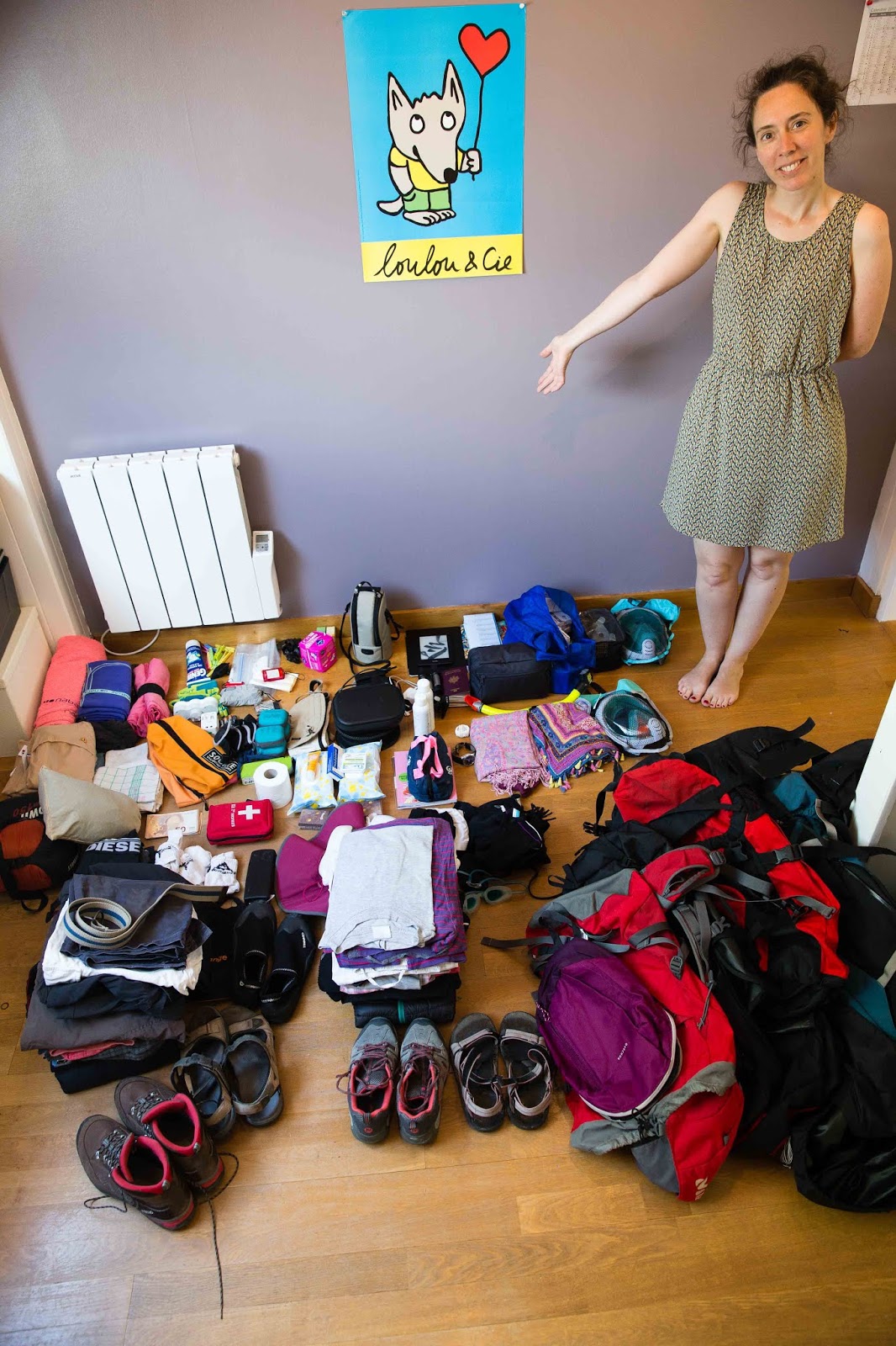 Au programme du week-end : inventaire de ce dont on a besoin, derniers achats, et préparation des sacs pour voir si ça passe.
