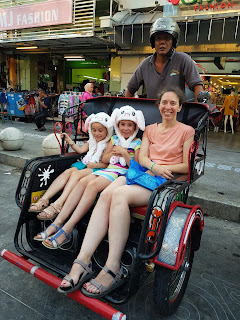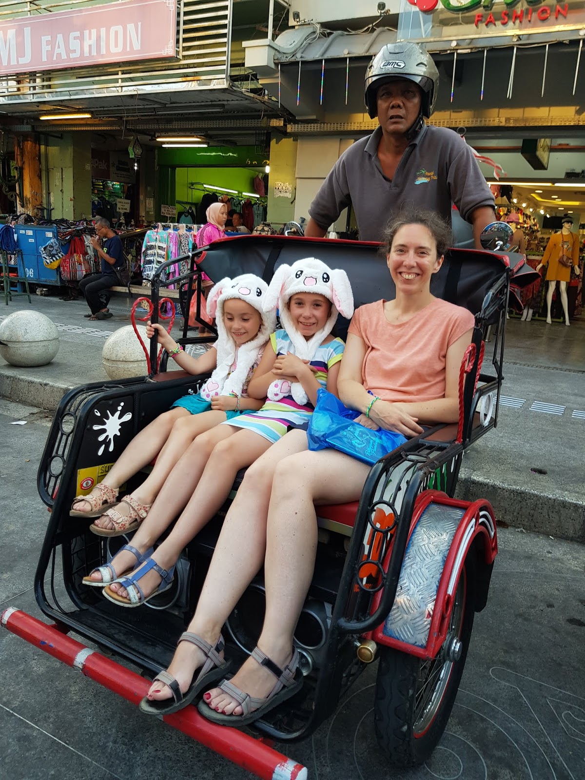 On retourne ensuite à l'hôtel via les taxis locaux. Nous en prenons 2, je suis seul dans le premier et les 3 filles dans l'autre. Comme Mathilde et Julie hurlent "papa" sur le trajet, ils se doublent à plusieurs reprises pour qu'on puisse se faire coucou