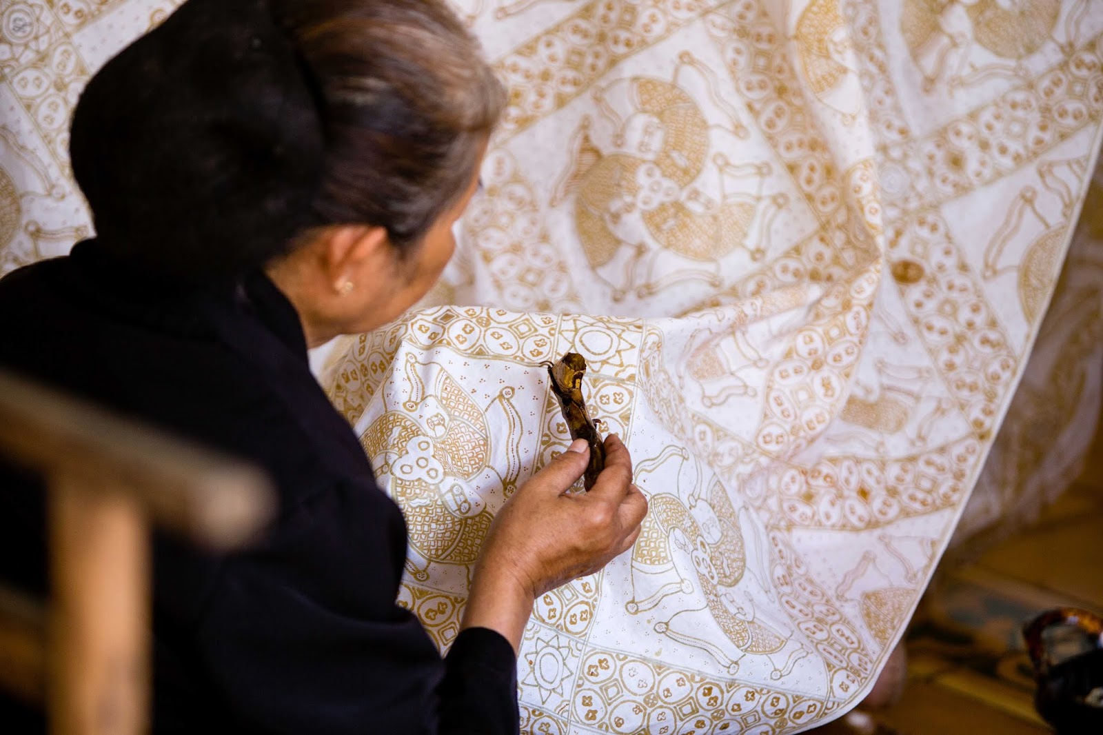 Le palais fait finalement simple et rustique. On assiste aussi à la fabrication de batiks : ce sont des tissus dont les motifs sont tracés à la cire avant d’être colorés, re-enduits de cire et lavés à l’eau bouillante et enfin repassés.