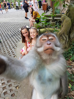 Dans le parc un singe chipe le téléphone de Gabriel pour faire un selfie avec les filles, heureusement nous arriverons à récupépérer le téléphone en bon état!