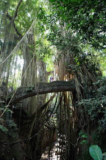 La visite de la forêt des singes est raffraichissantes et nous avons arrivons au moment où le soigneur donne à manger aux singes ce qui nous permet de les observer de très prêt. Nous parcourons ensuite la parc et observons les singes évoluer dans leur milieu naturel composé d'arbres très impressionnants.