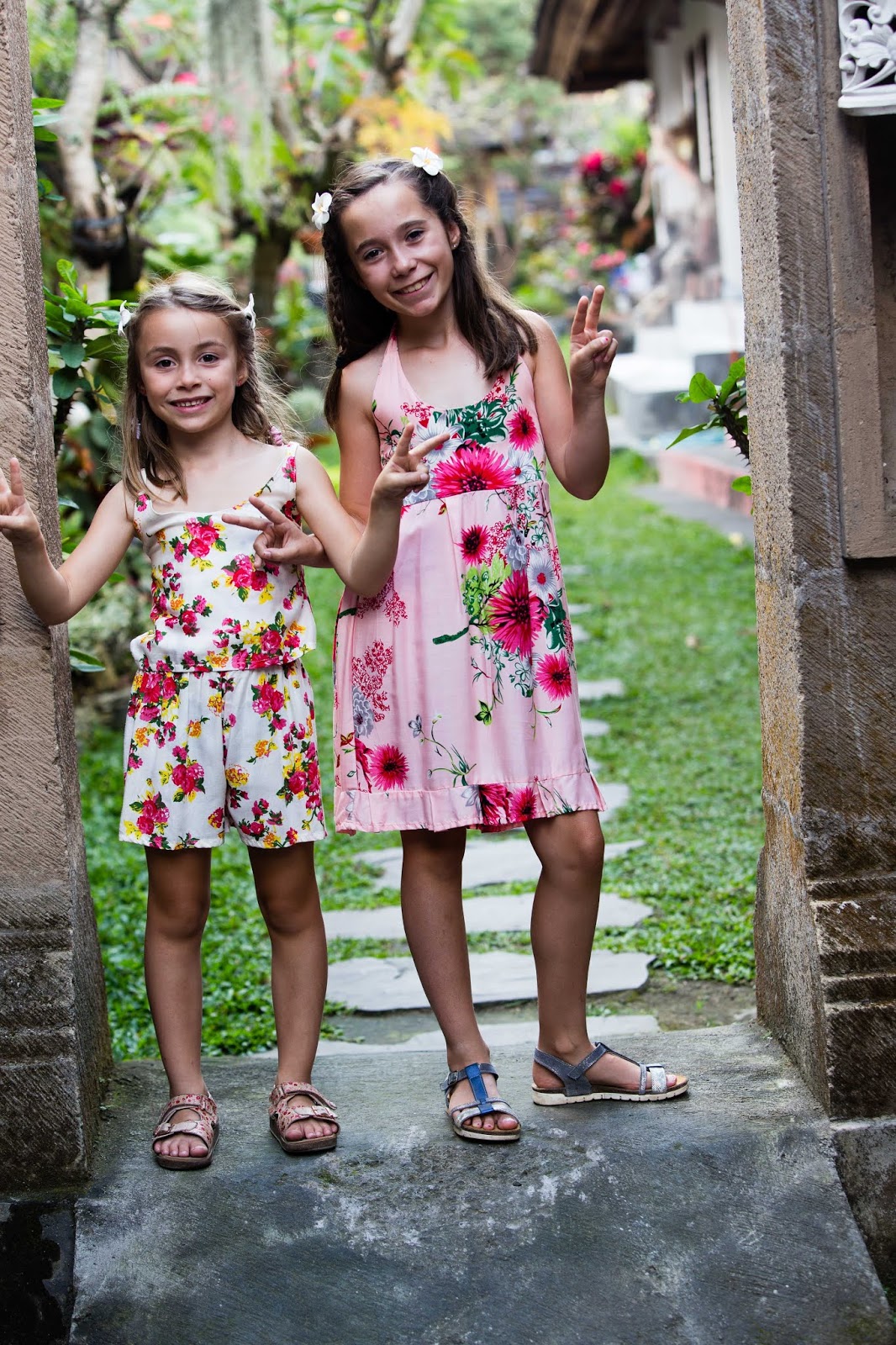 Nous commençons la journée par un excellent petit déjeuner de pancakes à la banane et jus de fruit frais. Nous rendons ensuite à la forêt de singes, sur le chemin nous trouvons un magasin qui vend de jolies robes pour les filles.