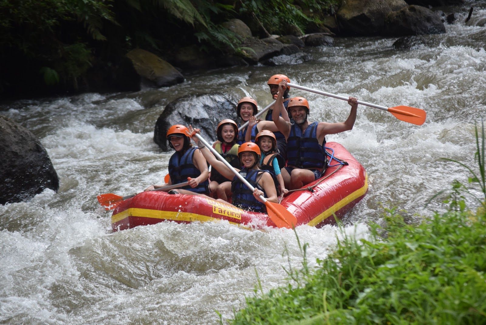 Ce matin c'est rafting pour nous 4 ! C'était génial, on s'est bien amusé et les paysages qui défilaient sous nos yeux étaient magnifiques. On était dans une vallée encaissée, bordée de jungle de part et d'autre. Par endroit la roche qui affleurait la rivière était sculptée de bas relief.