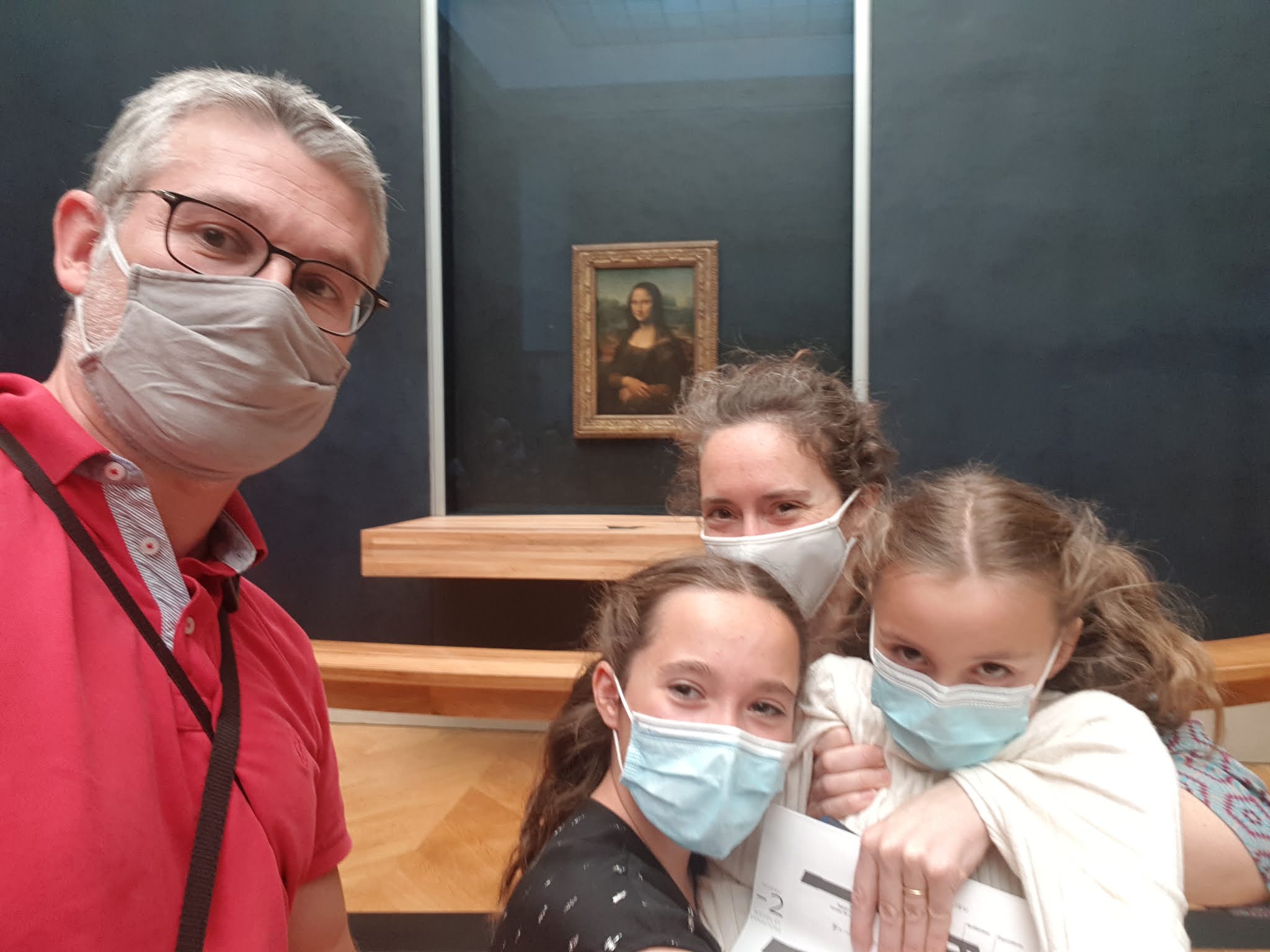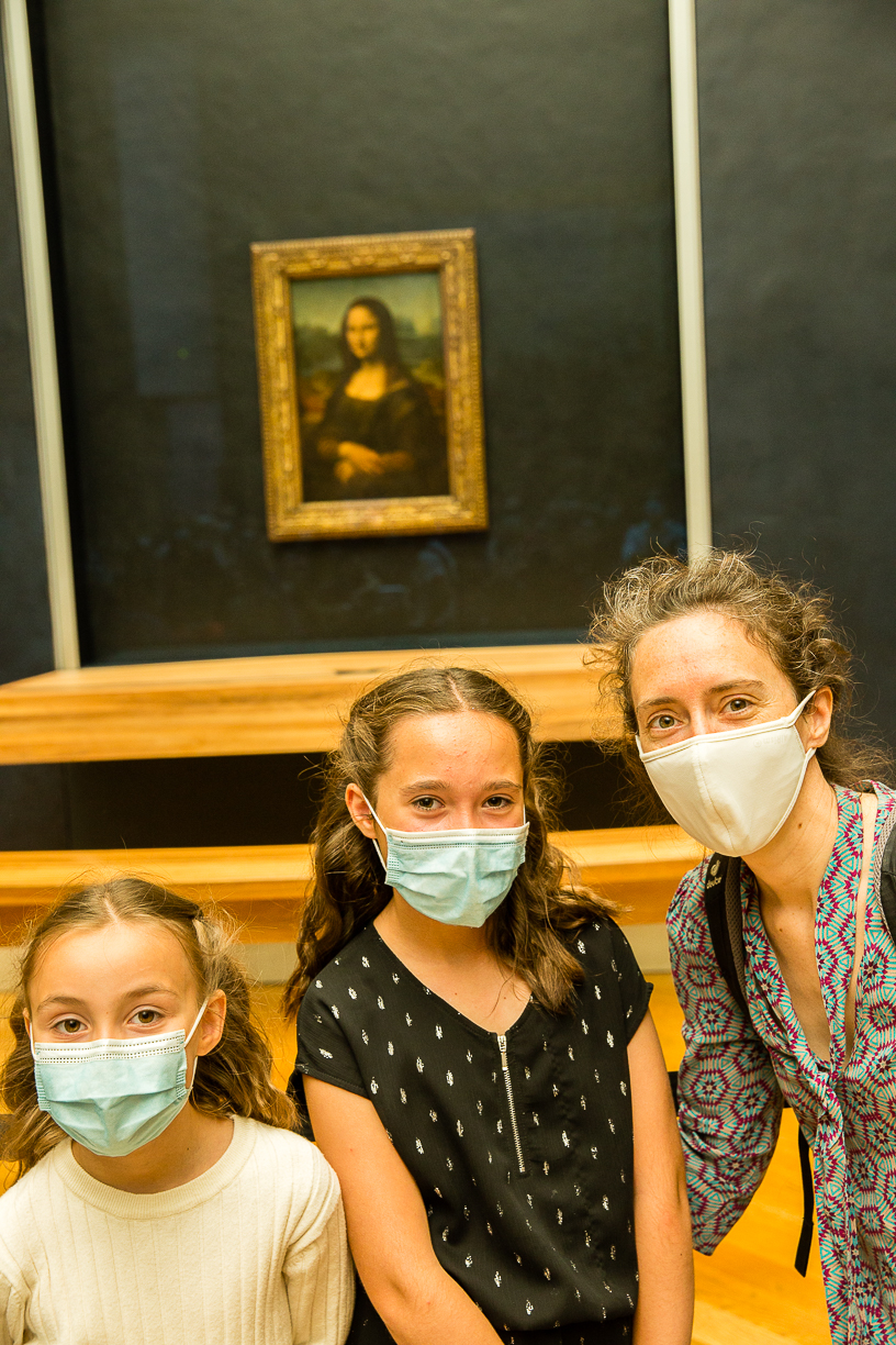Nous arrivons frais et dispo à 10h30. On voit le dispositif impressionnant de piquets et de cordes destinés à faire serpenter et attendre la foule, mais comme c'est l'habitude pour ces vacances, il n'y a personne et on remonte le serpentin jusqu'à arriver directement à l'entrée. On se dirige directement vers l’œuvre la plus connue à savoir le portrait de Lisa Gherardini, épouse de Francesco del Giocondo parfois appelée la Joconde.
