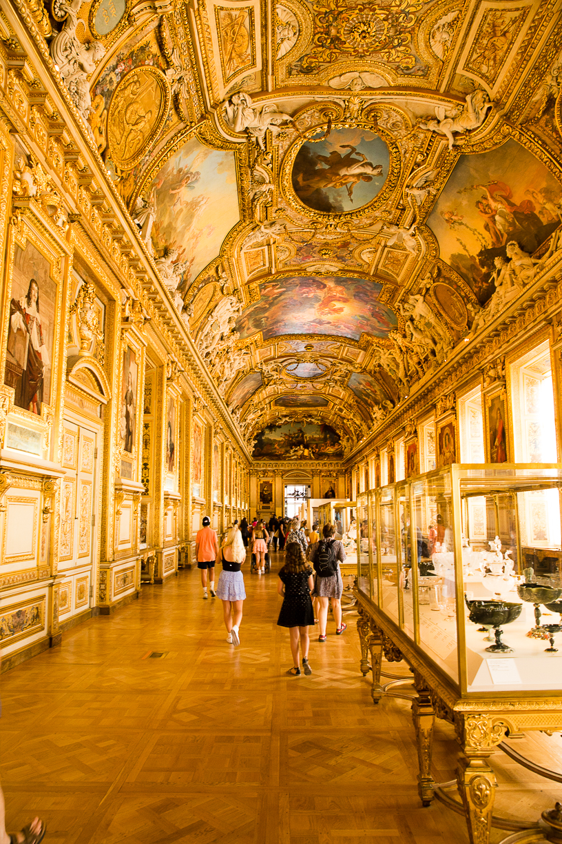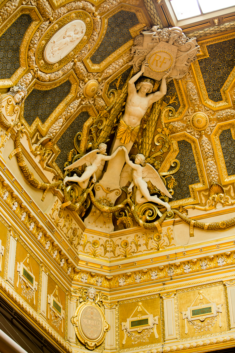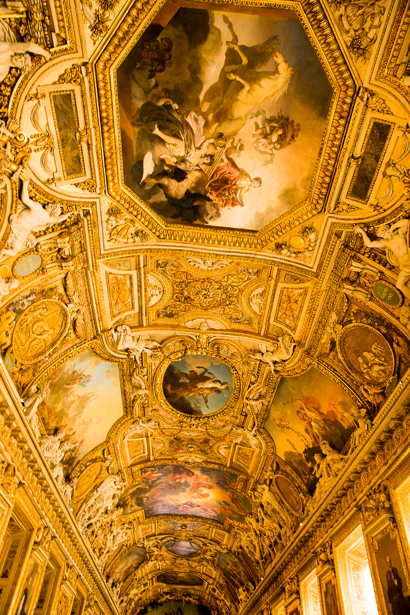Mais bien sûr le Louvre se sont aussi des plafonds extraordinaires, des galeries immenses aux boiseries et aux peintures magnifiques, des sculptures.