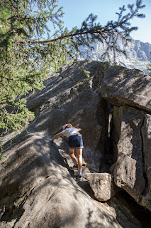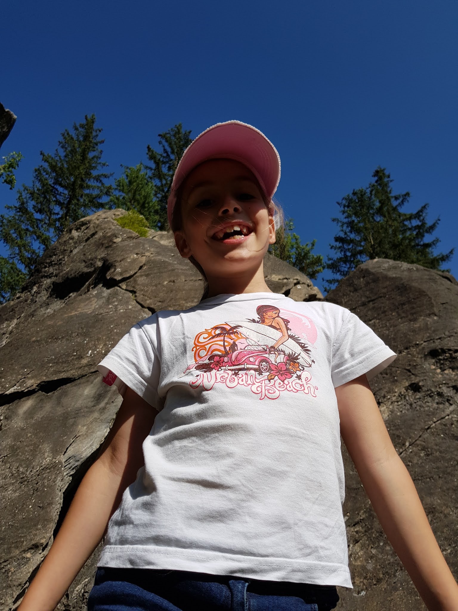 Bien sûr, Mathilde fait des extras sur le chemin en escaladant des rochers.