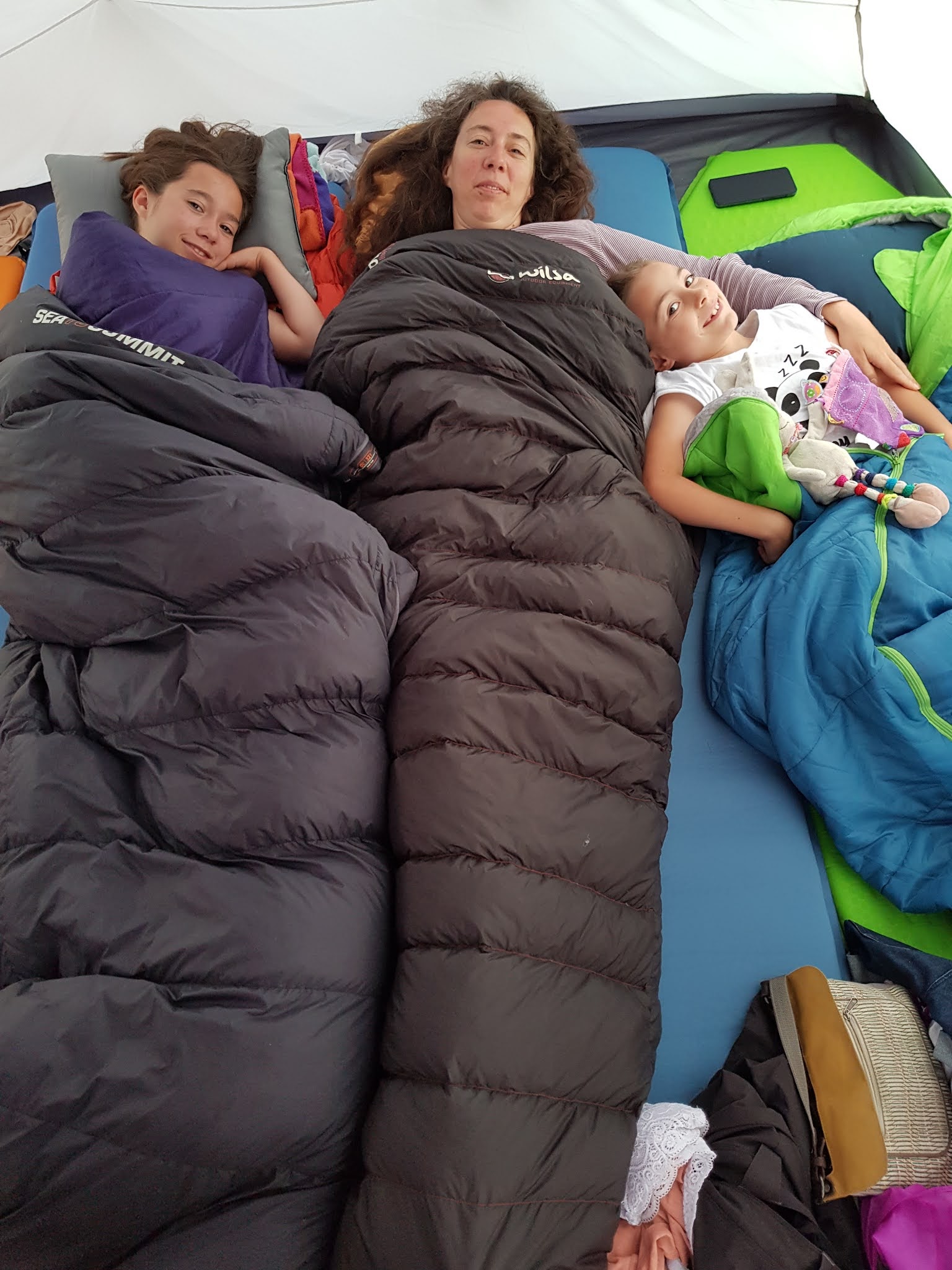 Nous avons passés une bonne première nuit sous la tente. Tout le monde a bien dormi, il a fait frais durant la nuit et on était bien dans nos duvets.