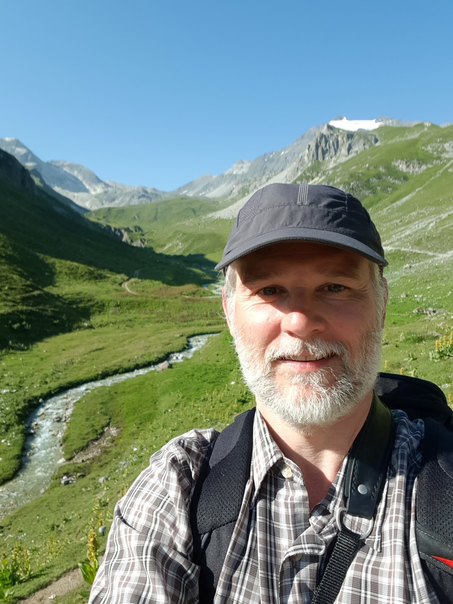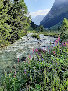 C'est reparti pour une journée de randonnée. Nous allons en voiture jusqu'au pont du roc de la pêche. Il est 8h30 et nous faisons deux équipes. « Les descendeuseus » et le « monteur ». Depuis notre point de départ les 3 filles descendent pour rejoindre notre camping à Pralognan-La-Vanoise tandis que je pars dans la direction opposée direction les sommets avec pour objectif le lac Blanc.