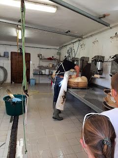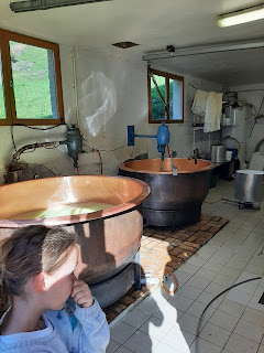 Les filles descendent bien et visitent au passage une fromagerie. Aux Prioux en voulant acheter du fromage, elles tombent sur le producteur de Beaufort qui va former 3 meules de Beaufort à partir des 1200 litres de lait produits par les vaches dans les alpages la veille. Céline est ravi de cette heureuse rencontre qui permet aux filles de découvrir ce savoir faire. Mathilde vous dira que l'odeur n'est pas de son goût, il faut dire qu'il règne une odeur de lait caillé assez forte.