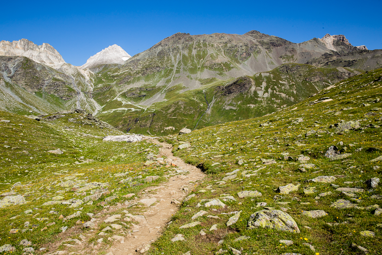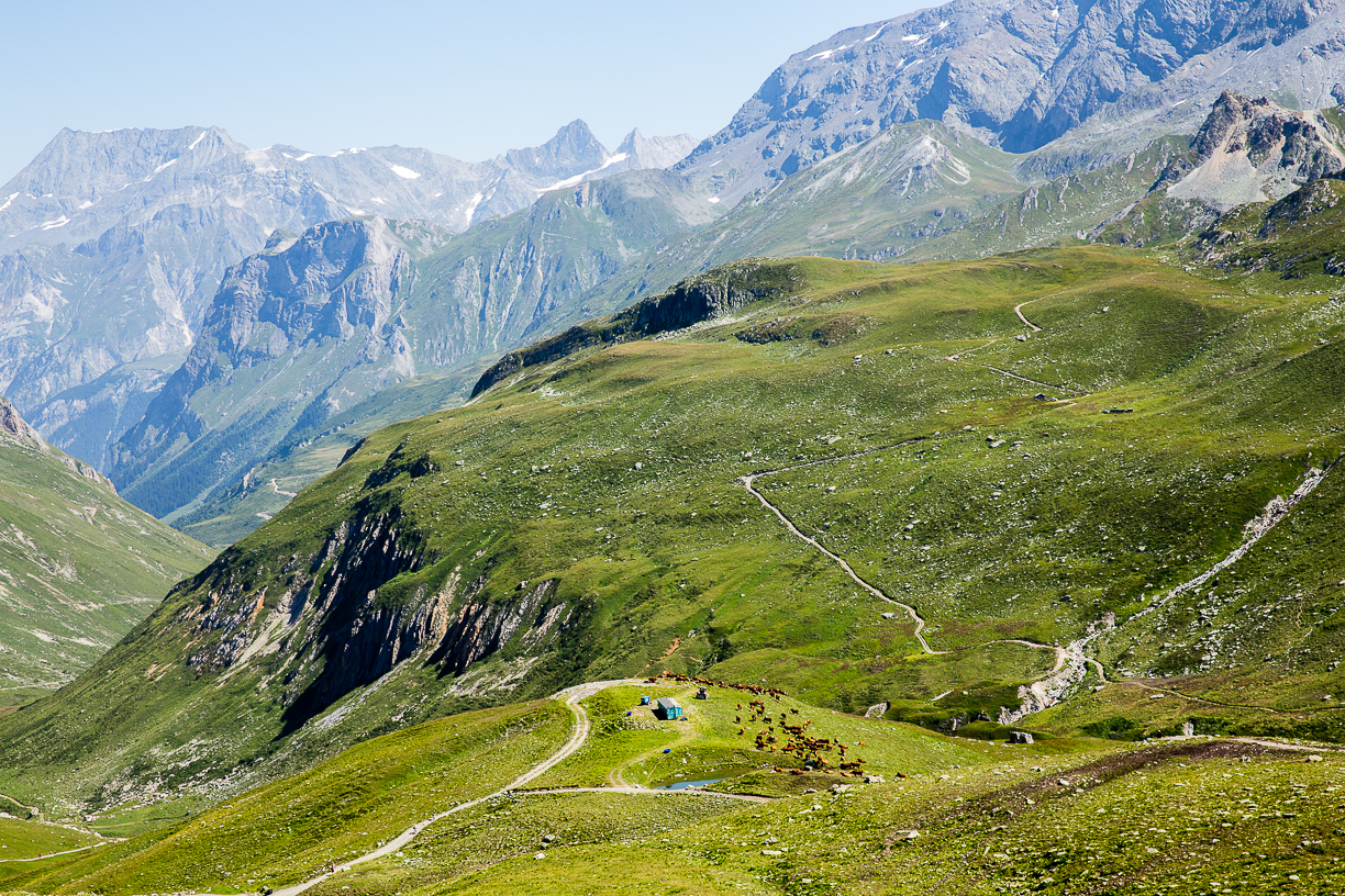 La température monte assez rapidement. Il n'y a pas un nuage dans le ciel mais étant parti assez tôt, j'ai chaud mais ne souffre pas trop. Je passe par le refuge du Roc de la Perche, puis continue jusqu'au refuge de Peclet-Polset.