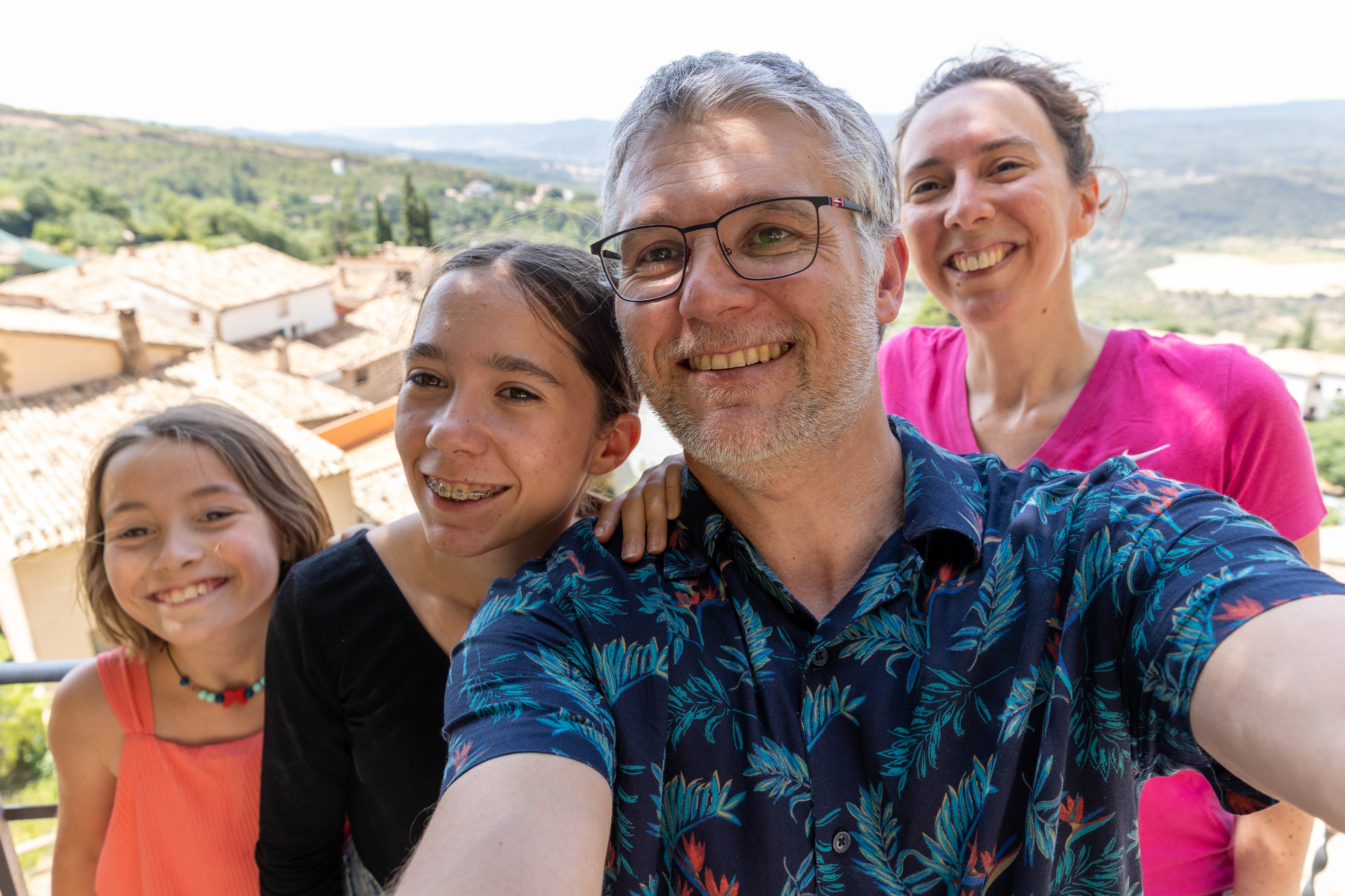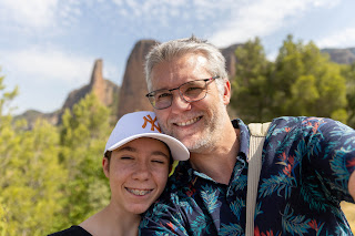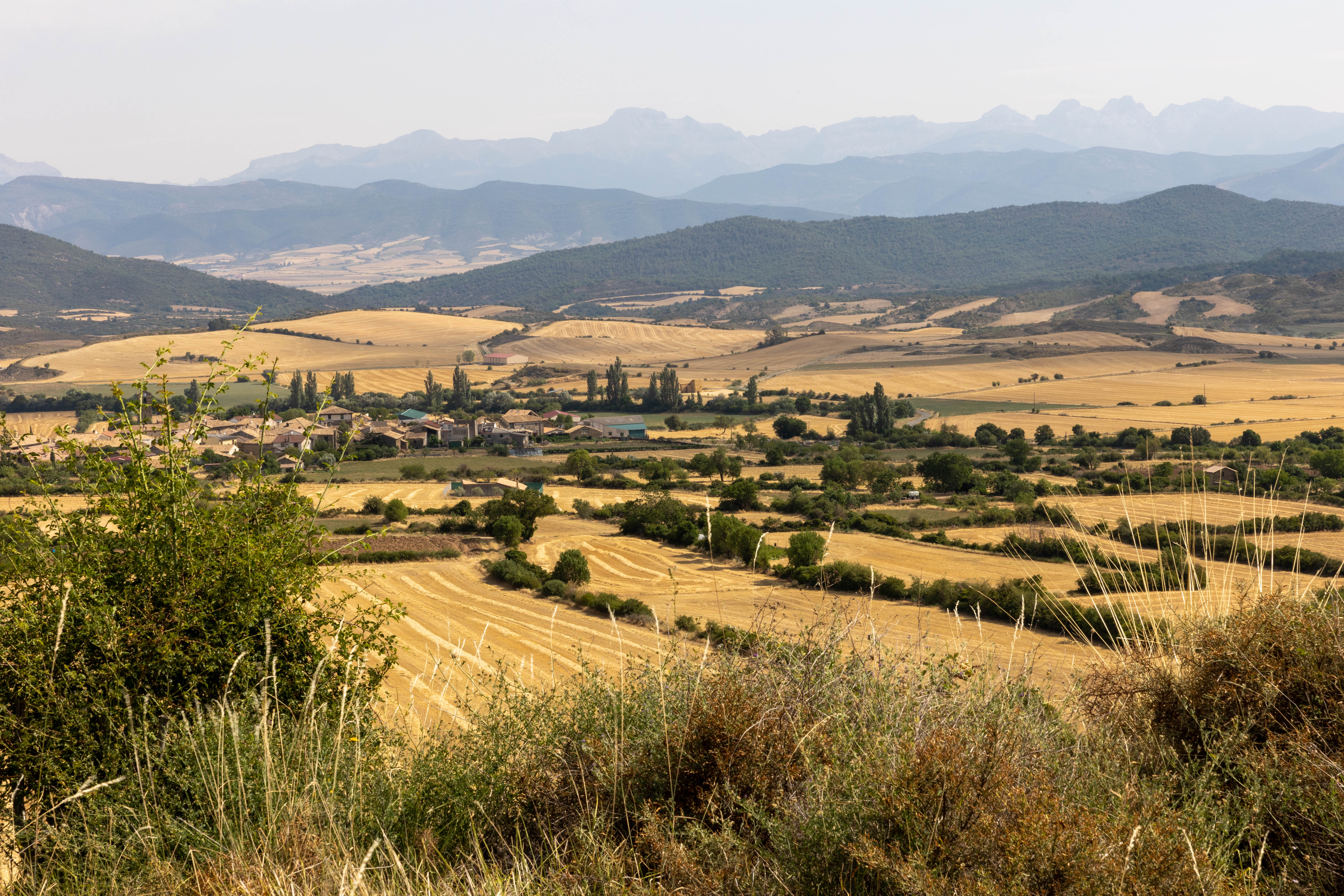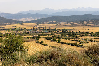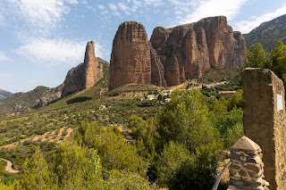 Nous faisons une heure de route dans la campagne d’Aragon pour rejoindre "Los Mallos de Riglos" d’étonnantes falaises couleurs rouge ocre. Les paysages sont très beaux sur le chemin et la température monte sur le trajet passant de 28 degrés au départ de Jaca à 38 vers midi.
