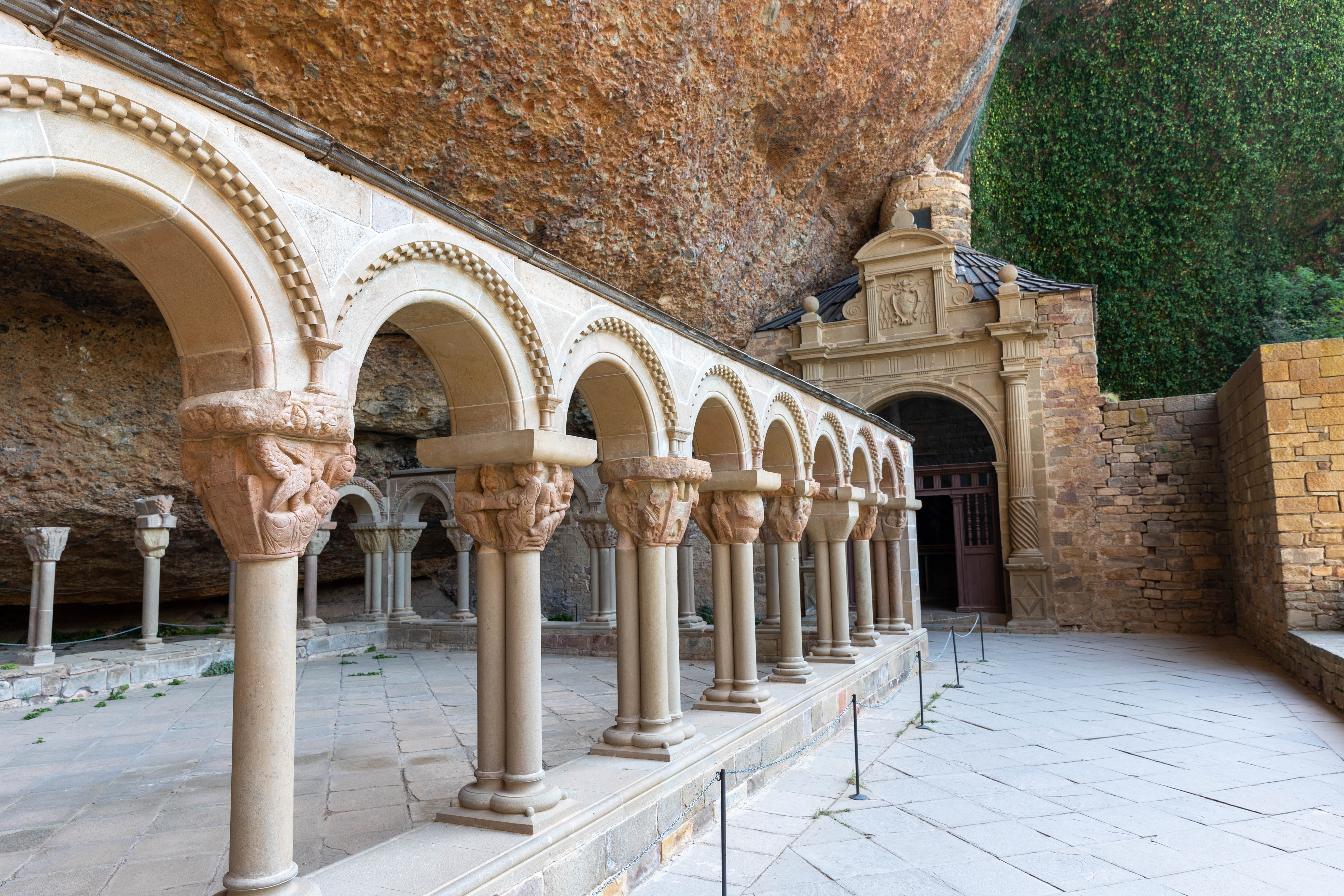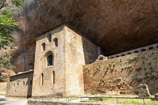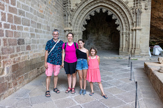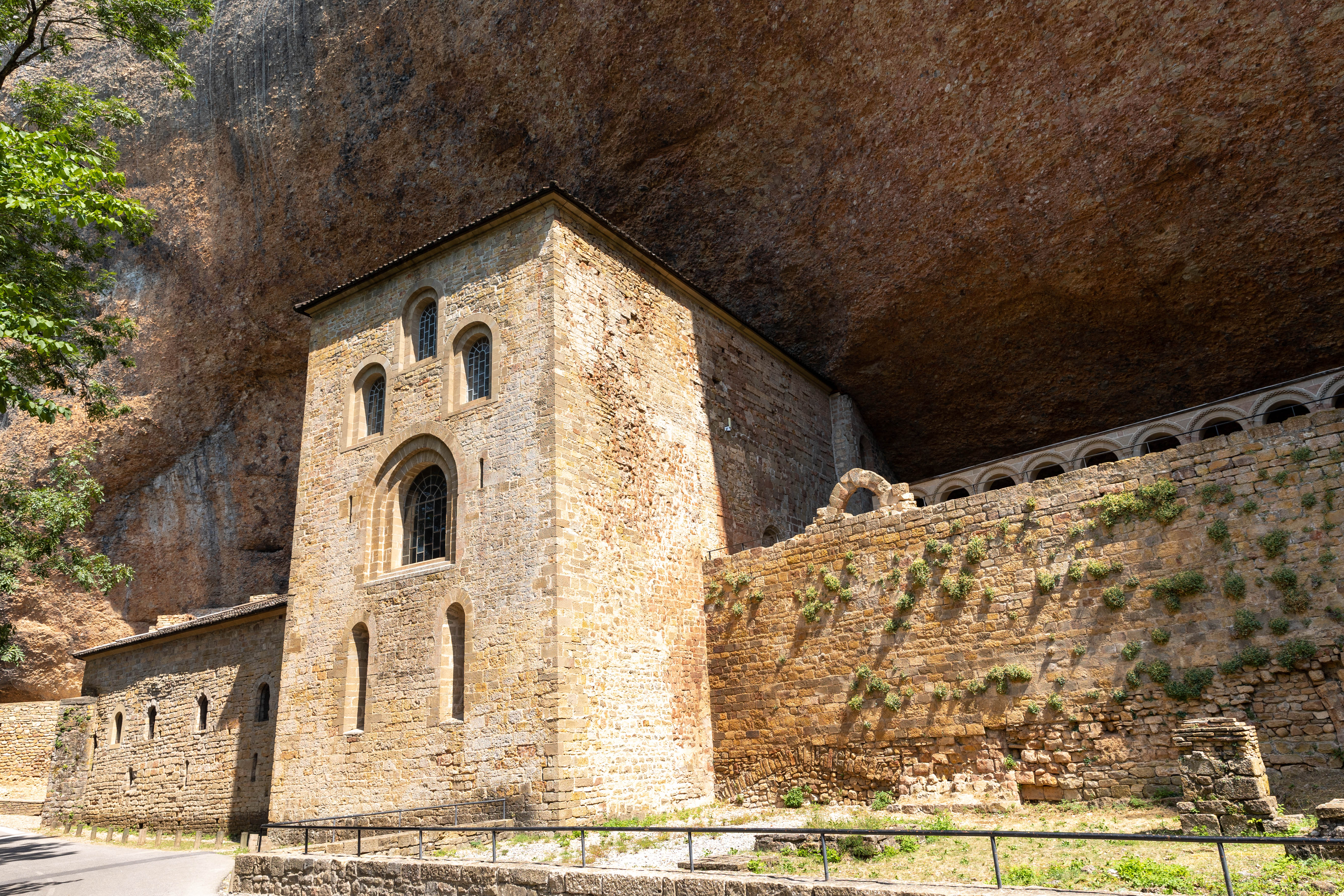L’après-midi nous repartons sur les routes sinueuses et tortueuses pour monter jusqu’au Monasterio San Juan de la peña. Nous n’avons pas vérifié les horaires et on espère que ce sera ouvert, et au milieu des montagnes, bien sûr, pas de réseau donc impossible de vérifier avant d’y être. On stresse un peu, surtout Julie qui nous dit qu’on devrait plutôt aller à l’hôtel pour se baigner plutôt que de se risquer sur cette longue route. La route est déserte, on ne croise personne, mais heureusement c’est bien ouvert !