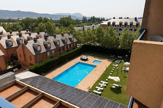 Nous arrivons à 16h30 à Jaca et après une installation rapide dans la chambre direction la piscine ! Les filles sont ravies et on se refroidit dans l’eau qui nous parait bien froide vu le contraste avec l’extérieur.