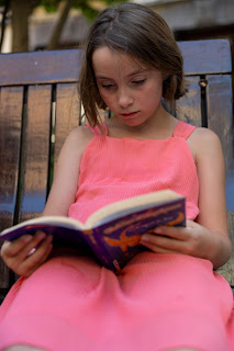 Mathilde profite de chaque pauses pour avancer dans sa lecture de la Cabane Magique.