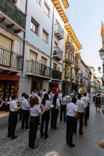 Nous avons la chance de croiser une fanfare et on fait le tour de la ville derrière elle. La fanfare nous mène dans les rues en avançant en cadence.