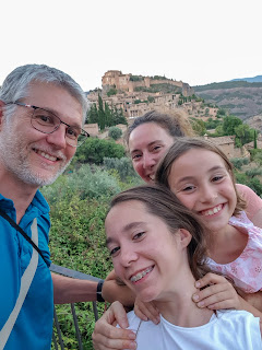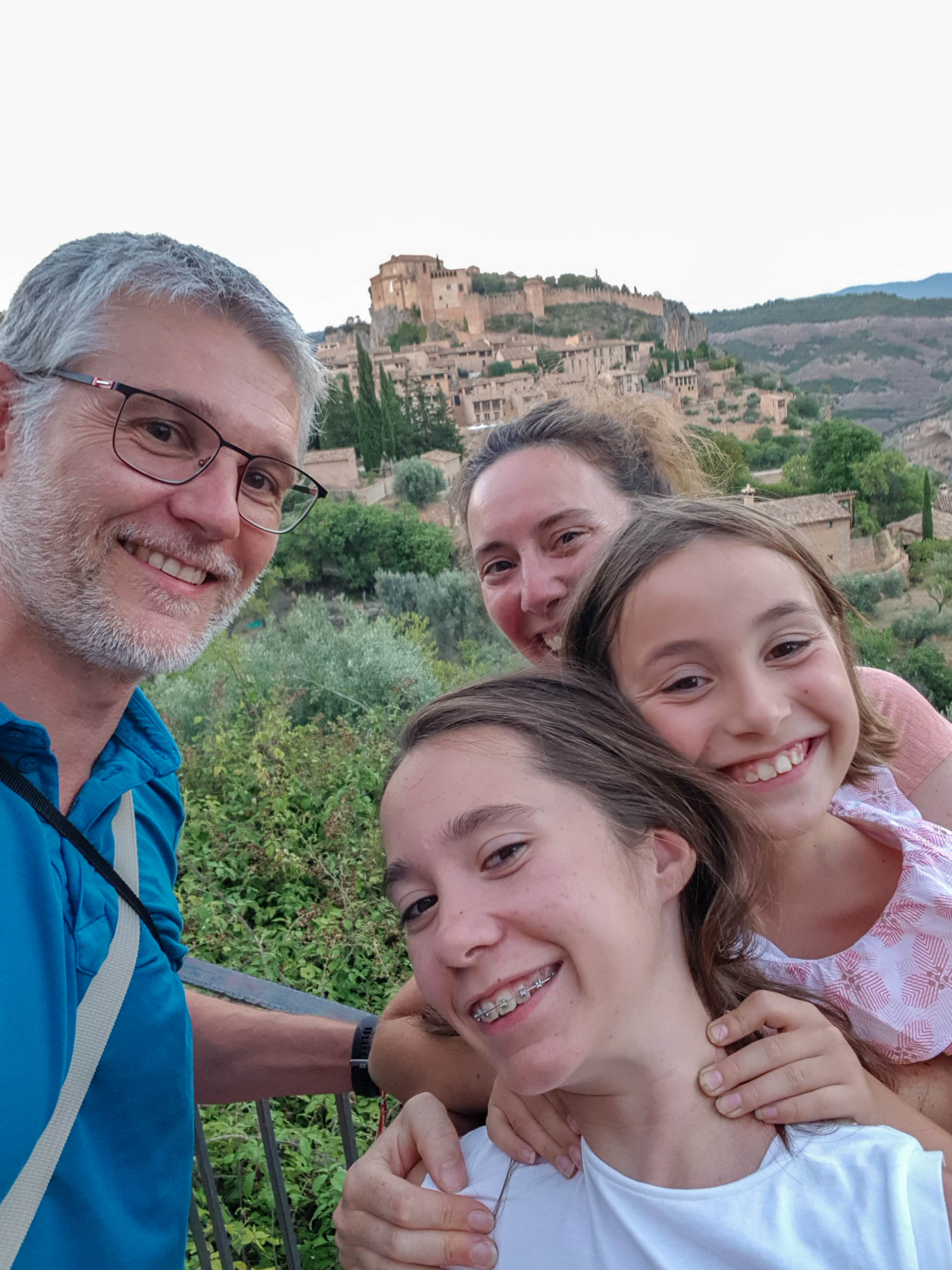 Après une douche rapide, on repart pour aller diner à Alquézar (35 minutes de route) dans un restaurant avec une superbe vue sur les montagnes. Il a été sélectionné dans les plus beaux villages d’Espagne. De jolies maisons de pierres, un village coupé en deux par un gouffre et de jolies églises.