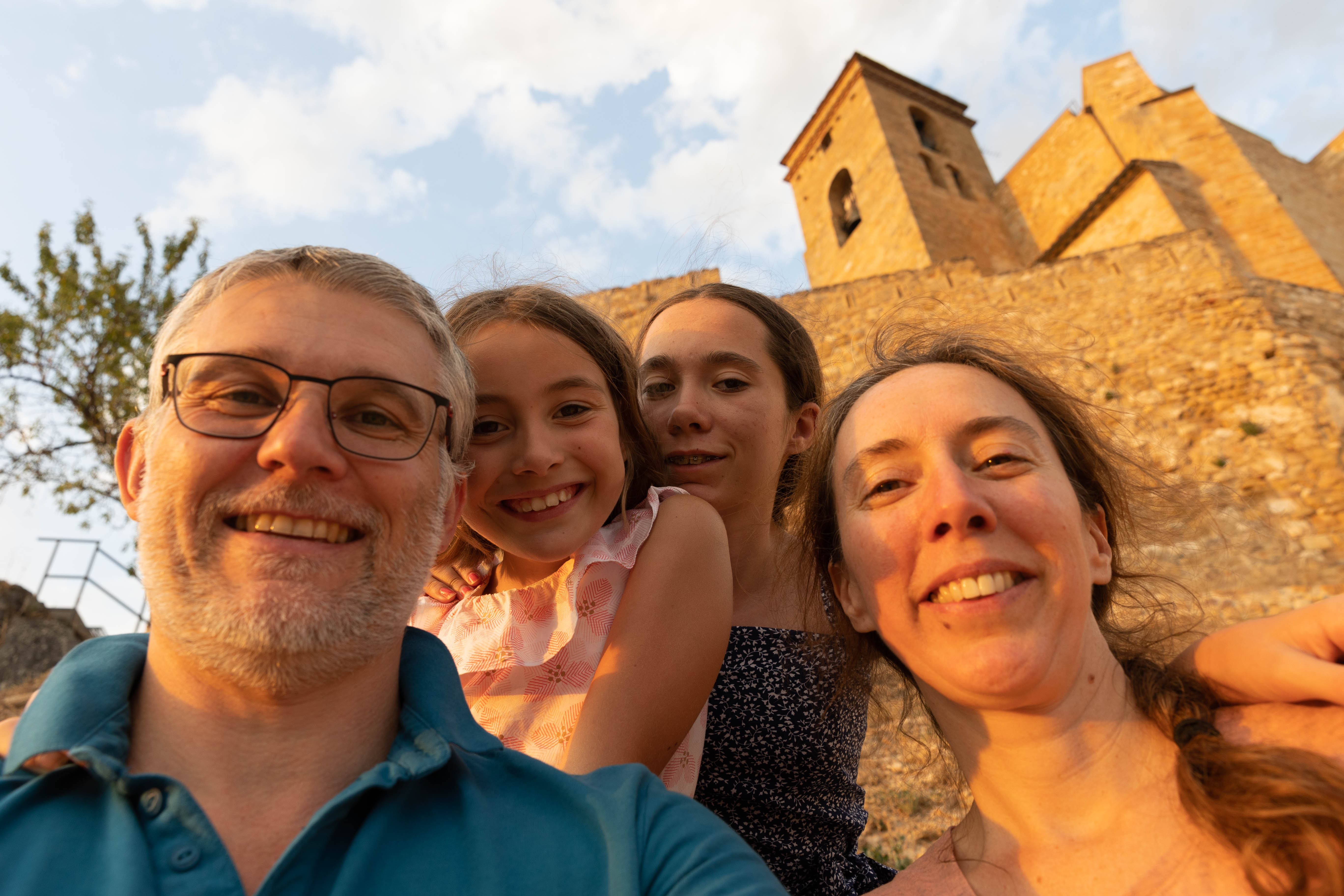 Avant notre départ, les filles profitent une dernière fois de la piscine de la Casa Tejedor pendant que Céline prépare les bagages. On quitte le parc national de Guara et on part à l’est. Notre prochaine destination est Benabarre une petite bourgade d’Aragon avec ses vieilles maison en pierre et son château qui surplombe la vallée.