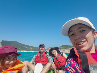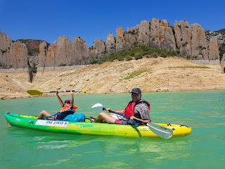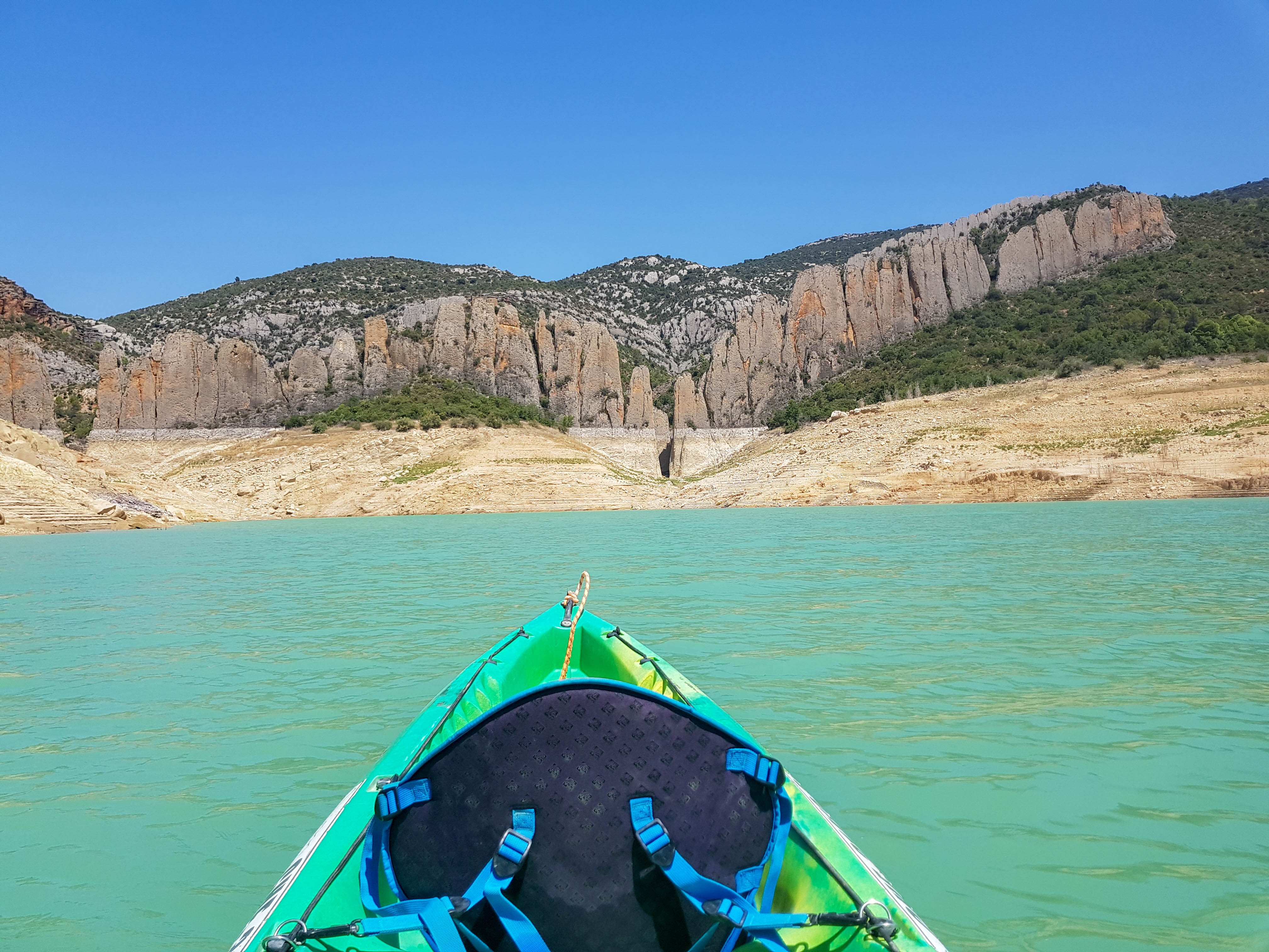 Il fait très beau et au bord de l’eau c’est super agréable. Les 14 autres personnes du groupe sont des jeunes entre 20 et 30 ans, ce qui nous inquiète un peu sur le rythme que nous devrons suivre mais au final, Céline et Julie sont devant 2 autres embarcations et avec Mathilde nous sommes plutôt à l’avant et on avance à bonne allure. On longe de belles falaises blanches, jusqu’à ce qu’au détour d’une colline on aperçoive enfin notre objectif de la journée les falaises de Finestres.