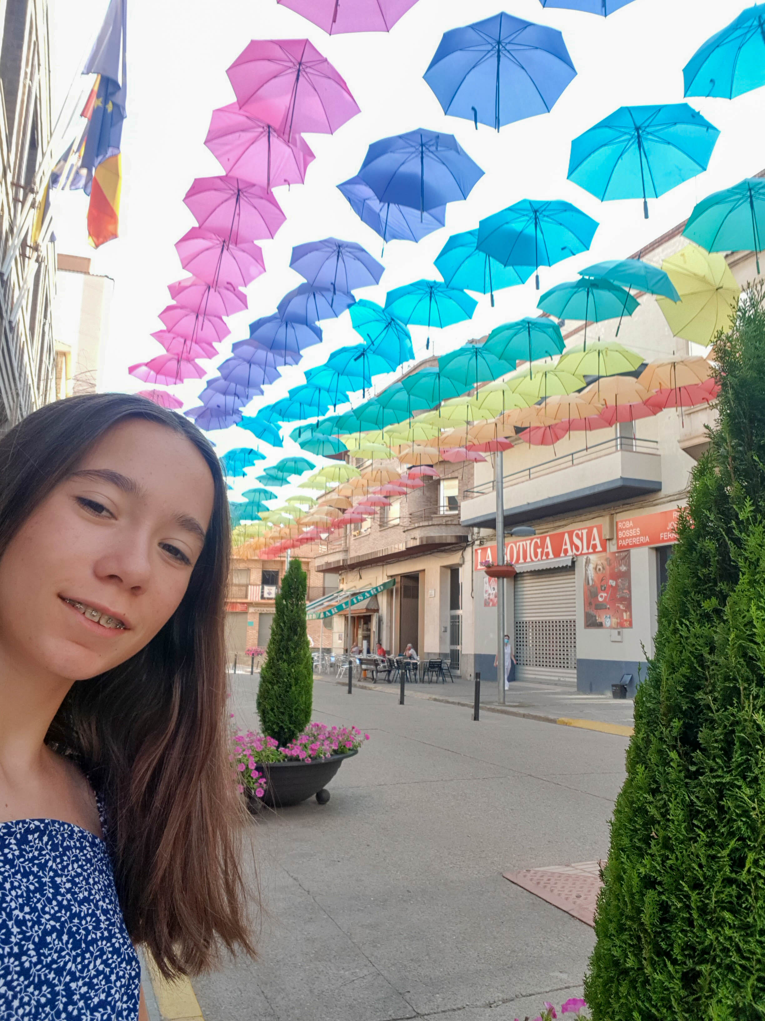 Lever à 8h et petit déjeuner dans la voiture car nous avons une heure de route pour rejoindre le point de rendez-vous du départ du kayak. En chemin on s’arrête acheter du pain et Julie repère une façade et une rue très jolie qu’elle prend en photo.