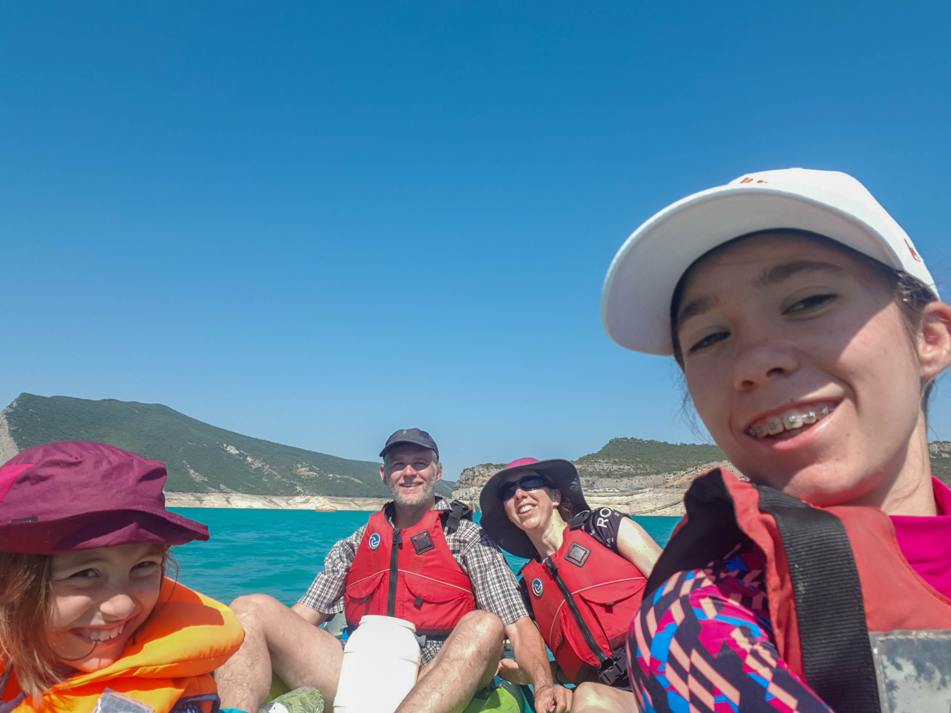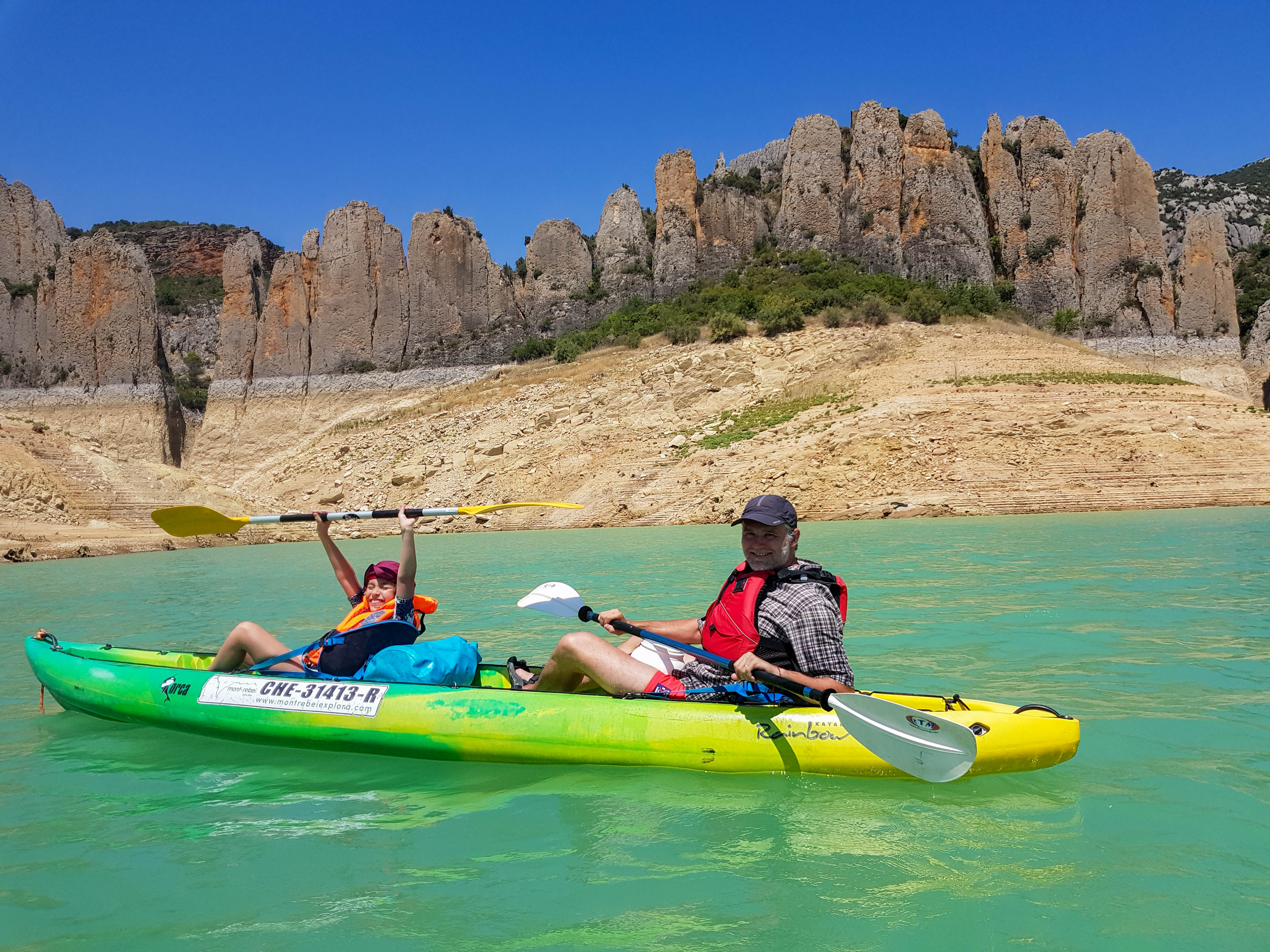 La première équipe est composée de Gabriel et Mathilde, tandis que Céline et Julie prennent l’autre Kayak.