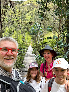 Le stress du jour sera pour Julie. Nous devons traverser la rivière sur un pont suspendu. Des câbles en aciers rejoignent les deux berges, en-dessous de nous la rivière et de gros rochers. Le problème ce sont les planches. Des planches de bois grises, fendues par endroit, pas toujours très stable.