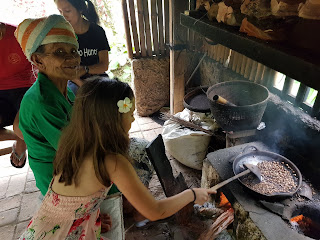 L'étape suivante est une exploitation produisant notamment du café, du cacao, du poivre etc... On nous présente les différentes de fabrication du café.