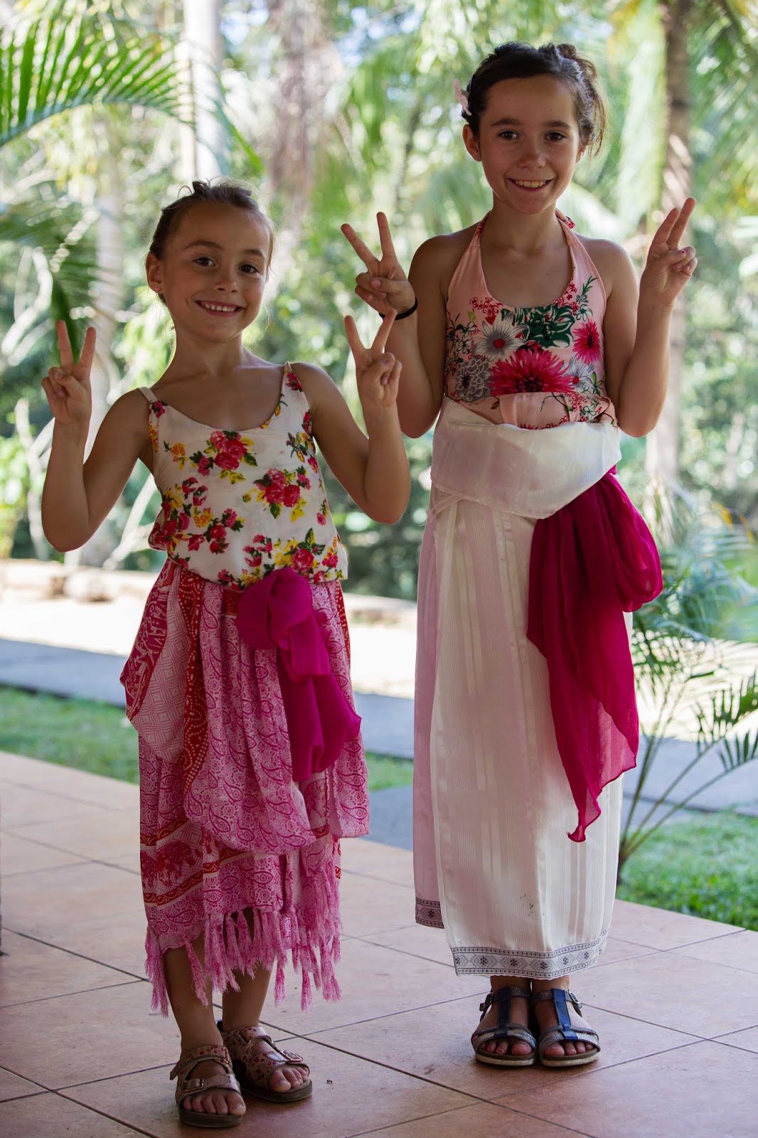 Il y a pleins de points de vue sympa pour prendre des photos et on a nos deux top-models toujours souriantes et prêtes à prendre la pose. On part ensuite visiter le temple "Elephant cave" où le sarong est obligatoire.