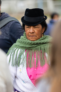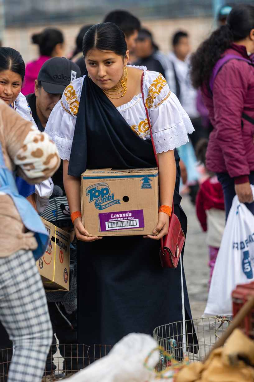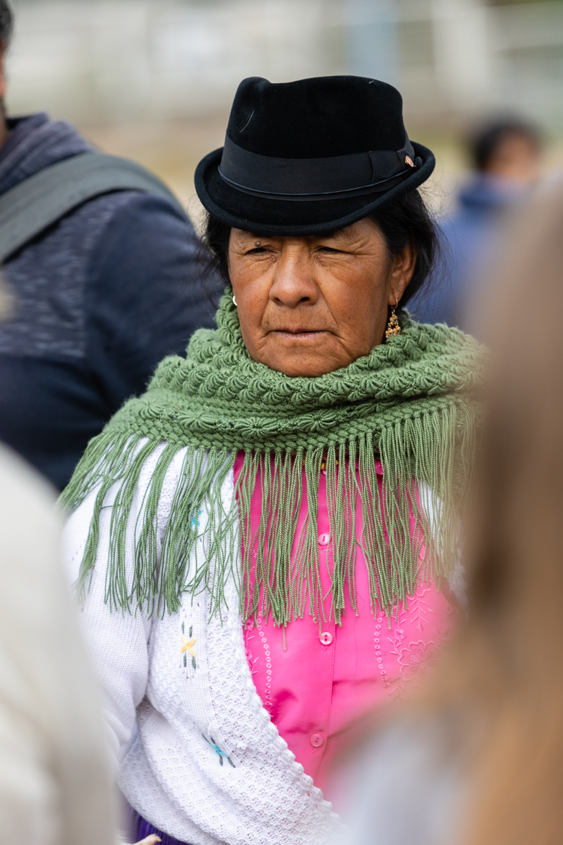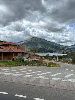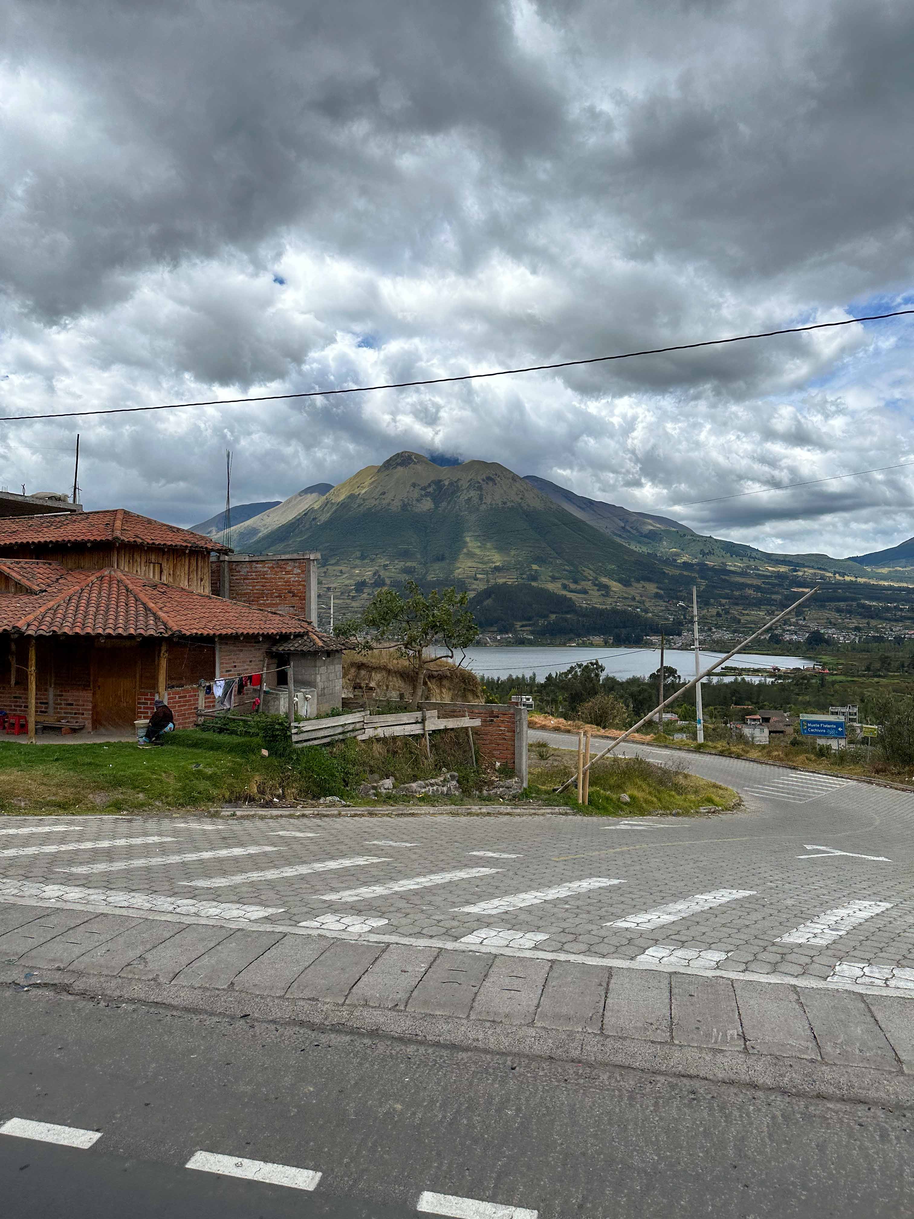 Ici très peu de taxis ! On en voit un passer mais il y a déjà quelqu’un. On est à 1.5km d’une route un peu passante et on hésite à y aller à pied. Je demande à une dame s’il y a des taxis ou des bus qui vont passer et vont en direction d’Otavalo. Elle est très gentille et part se renseigner. Elle nous dit d’attendre où on est et peu de temps après un bus passe. Il va à Otavalo !